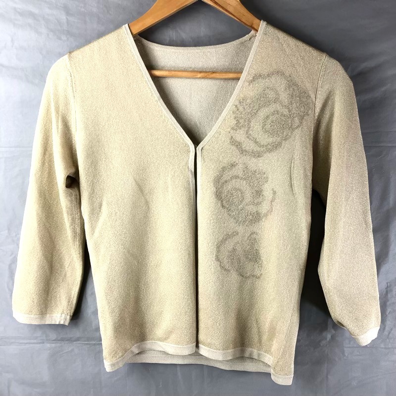 | 商品名 | カールラガーフェルド KARL LAGERFELD カーディガン 花 ラメ 一つボタン ベージュ ゴールド 921486 |