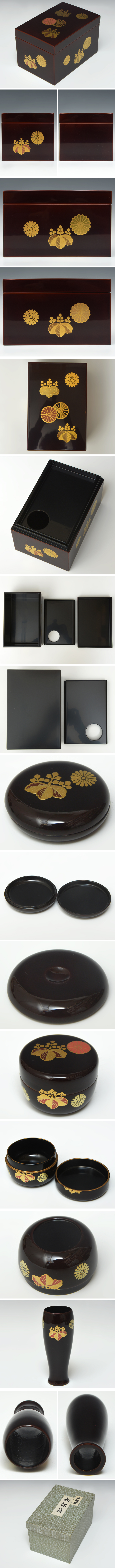 本漆塗 菊桐蒔絵 利休箱 茶筅筒 棗 香合 野点用 茶箱セット 茶道具 茶器 漆芸 木工芸 天然木 |