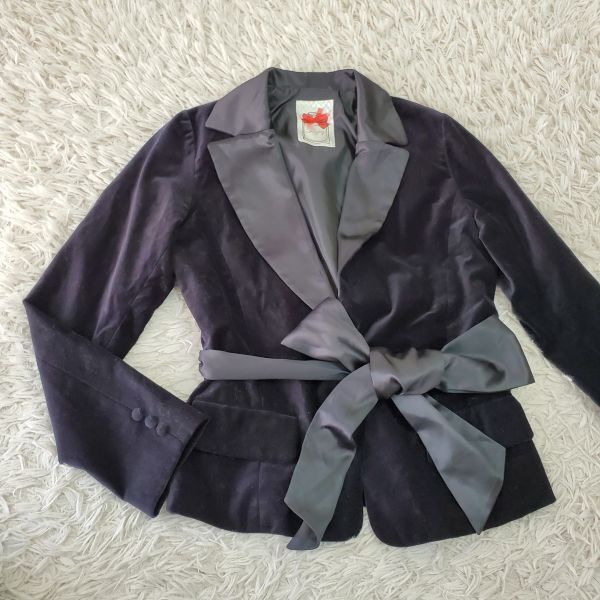 くるみボタン、高見えスウェード生地のリボン付きが魅力です。