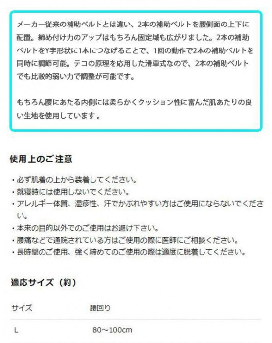 | ダブルの補助ベルトと幅広のボーンで、気になる腰をがっしり固定します。 ※予告なく製品の仕様が変更になることがあります。予めご了承ください。 ※洗濯をする際は面ファスナーを受け部分に留めて手洗いを行ってください。 ※塩素系漂白剤・柔軟剤・アイロン・乾燥機の使用は商品の特性を損なう可能性があるため、避けて下さい。 |