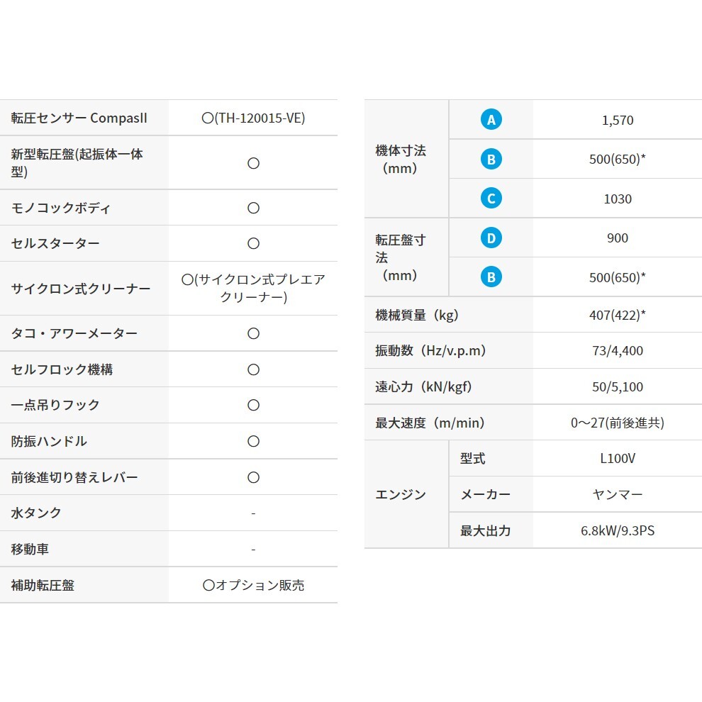 転圧センサー"CompasII"搭載NETIS登録モデルフロントカバーと一体化した、軽量・強靭モノコックボディを採用。NETIS登録技術…地盤の締固め度を見える化する転圧センサー"CompasII"搭載。パワフルなディーゼルエンジンを搭載。起振体一体構造の新型転圧盤の採用で走行スピードが約20%アップ。メーカー在庫僅少につき、場合によっては通常よりも納期がかかります。購入前の納期の確認も承っておりますので、ご心配な方は事前にご相談下さい