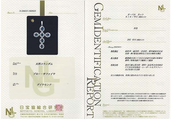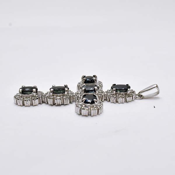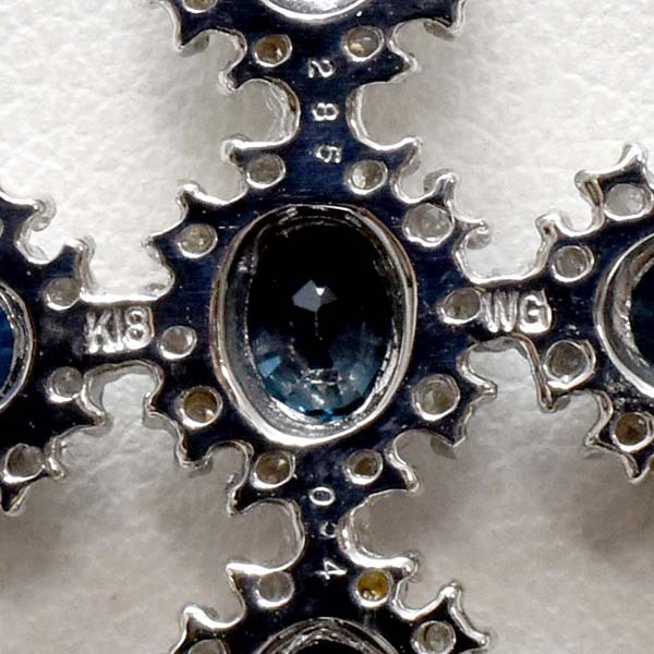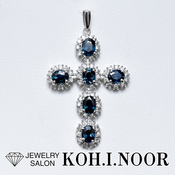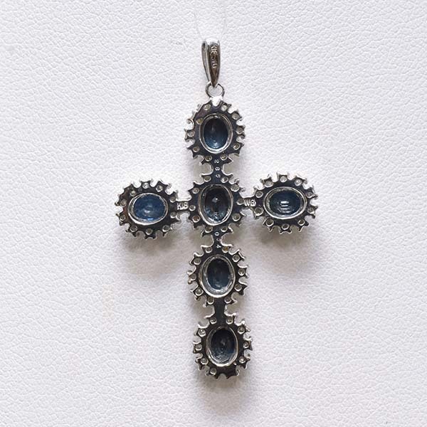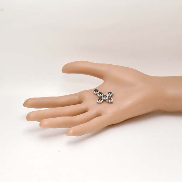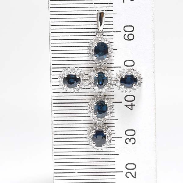 6石のサファイアをセットした18金ホワイトゴールド製のクロスモチーフペンダント。| 商品詳細 | |||||||||||||||||||||||||||||||||||||