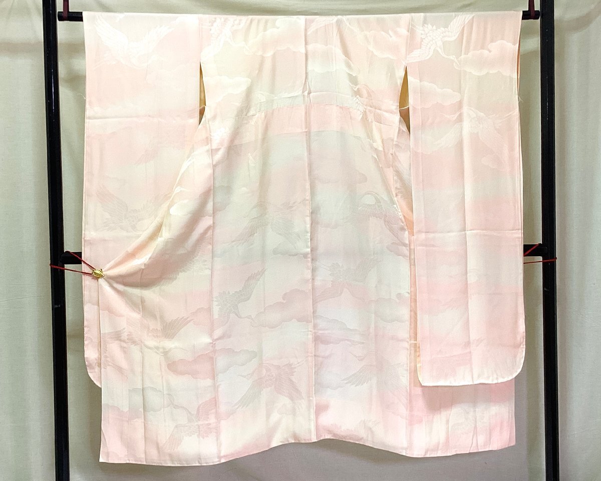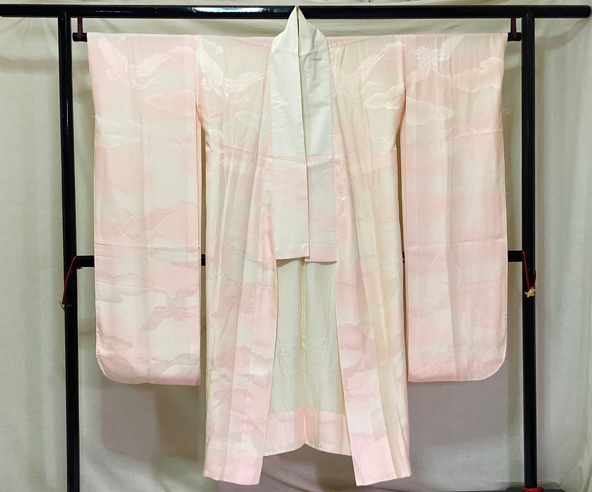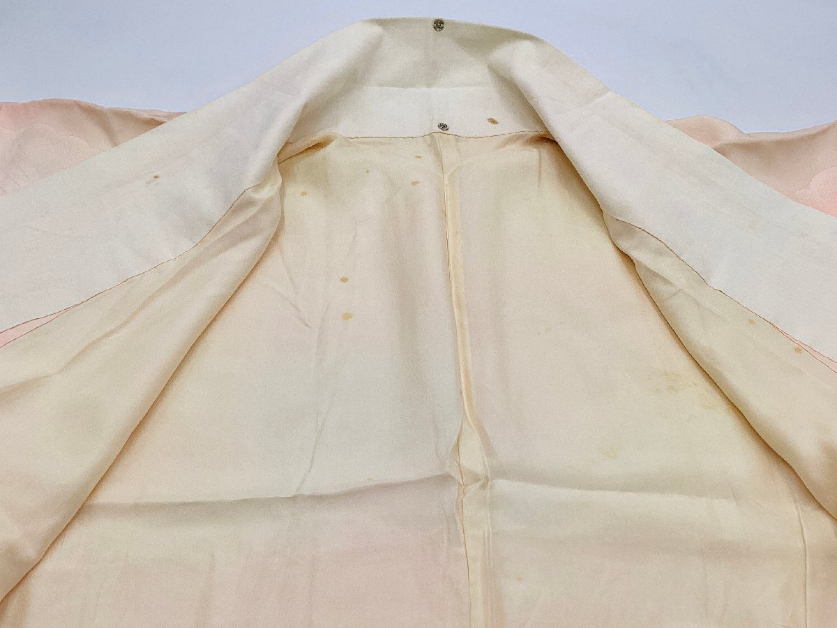 | コメント | 中古の正絹お仕立て上がり長襦袢です。 振袖用紋綸子にボカシ染された品物です。 広衿仕立て身幅ゆったり仕立てです。 練習用等におすすめです。画像のような裏地等汚れシミある品物です。 |