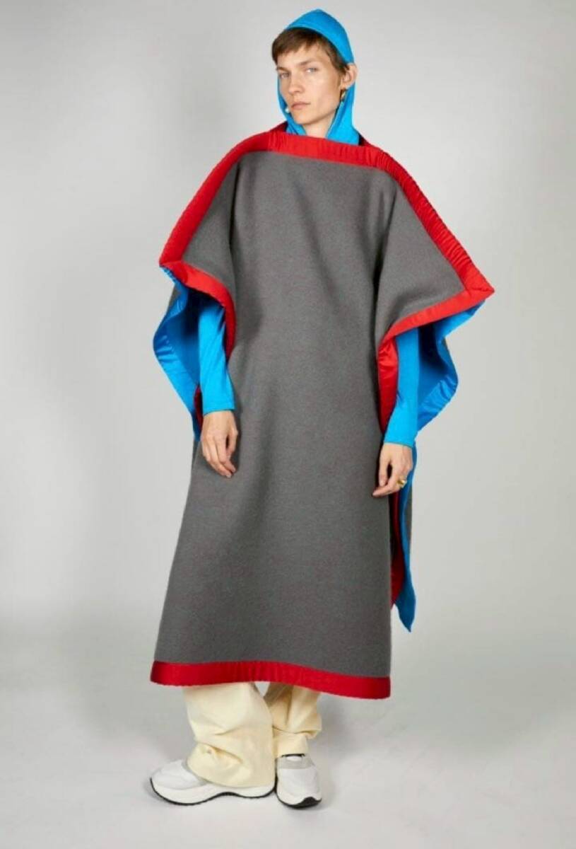 フィービーファイロ最後の2018AWコレクションより、グレーのウールのブランケットコートです。