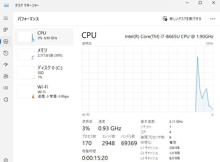 | CPU | Intel Core i7-8665U |