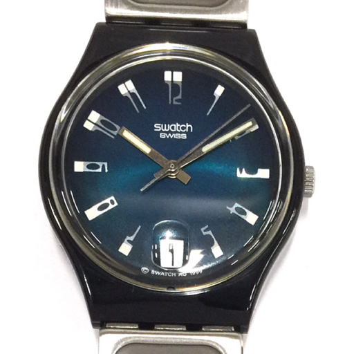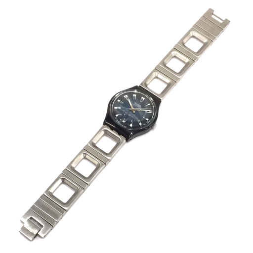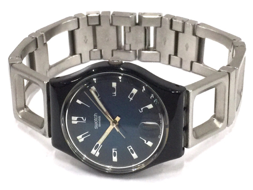 | スウォッチ クォーツ アナログ 腕時計 デイト ブルー系文字盤 純正ブレス 未稼働 ファッション小物 SWATCH |