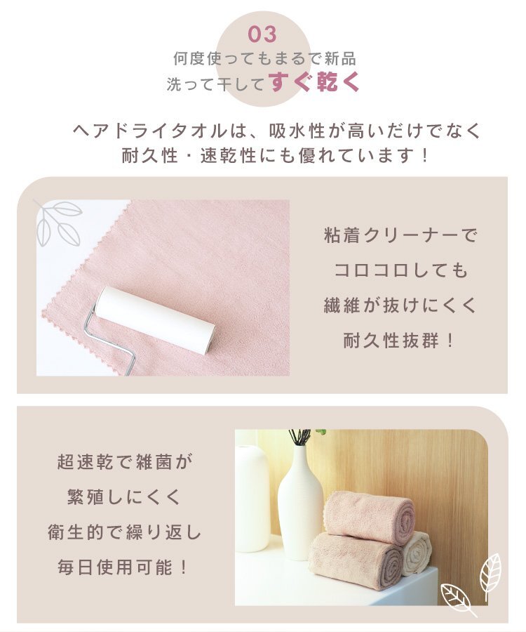 \ 時短・節電・美髪ケアがこれ1枚で! / ふわもちの極上吸水ヘアドライタオルで、濡れ髪ダメージを最小限に! お風呂上がりも夏のドライヤー暑さ問題も解決! ■綿の約5倍の吸水力でドライヤー時短! ■髪にも肌にも優しい、ふんわり摩擦レス仕様 ■速乾&高耐久で毎日使っても新品級! ■こだわりのカラバリ! 子育て中のママにも嬉しい速乾&清潔仕様♪ サウナやレジャーへの持ち運びタオルとしても◎ 【商品仕様】 カラー:ライトグレー 2枚セット サイズ:レギュラーサイズ(約)100×40cm 素材:ポリエステル85% ナイロン15% 【注意事項】 ・繊維製品の性質上、初回お洗濯時は繊維くずが落ちる場合がございます。 2回目以降のお洗濯から抜け落ちは減っていきますので、予めご了承ください。 ・商品は、モニターによって色合いが異なって見える場合があります。 ・仕様・デザインは改良のため予告なく変更することがあります。 ※もちろん新品未使用品です 商品コード:DTW001LG ▼検索ワード タオルキャップ ドライキャップ 高品質 柔らかい やさしい シンプル カラータオル さらさらヘア うる艶 さら艶 おすすめ 美髪 ヘアケア 美容 枝毛 切れ毛 ダメージケア ショート ロング セミロング 髪の潤いを逃がさない 寝ている間にヘアケア 髪のお悩み 寝ぐせ パサつき うねり ロングフェイスタオル トリートメント効果 頭皮を保湿 手洗い 部屋干し コンパクト ミニマリスト 一人暮らし 下宿 サウナ スポーツ |