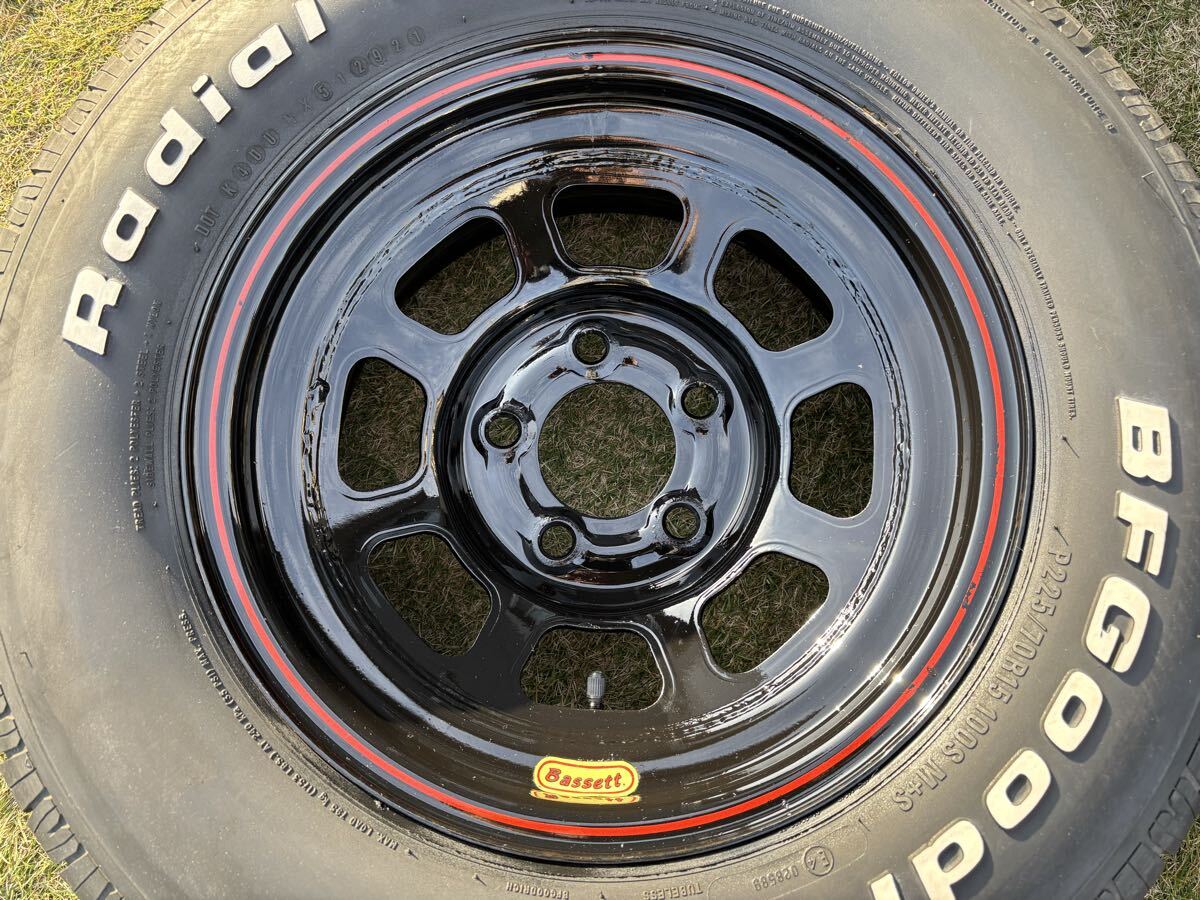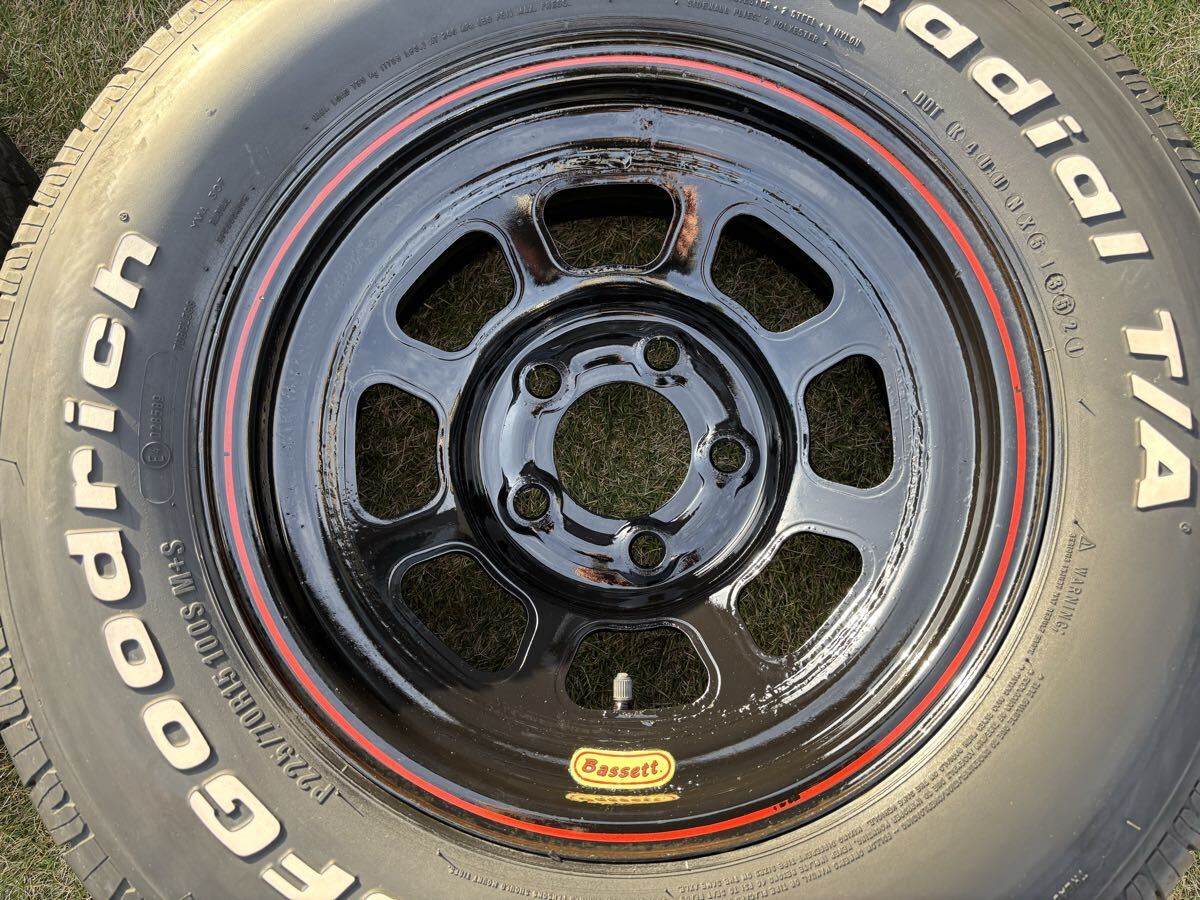 | ★直接手渡し大歓迎 超希少 バセット ホイール 15×7J 5穴 PCD127 4本SET ブラック再塗装済み & 2021年製 バリ山 BF Goodrich RADIAL T/A 225/70R15 ホワイトレタータイヤ 4本SET 1996年式 シボレーアストロにて使用 洗浄済み・即使用可能の出品となります。 【ホイール】 ■メーカー:【Bassett Racing Wheels】★バセットレーシングホイール ■生産国:【MADE IN USA】★アメリカ製 ■モデル:【Dホール】 ■サイズ:【15インチ】 ■リム幅:【表記なし】★4本ともサイズの刻印がタイヤで隠れており見えませんが、リム端面からリム端面まで約21.5cmのため、今までの経験上おそらく7J×4本だと思います。 ■オフセット:【約-5mm】★多少の誤差はご容赦下さいませ。 ■穴数:【5穴】 ■P.C.D:【127】 ■ハブ径:【約83mm】★多少の誤差はご容赦下さいませ。 ■数量:【4本】 ■カラー:【ブラック×レッドライン×イエロー(ステッカー部分)】 ★レッドラインとロゴ入りステッカー部分を残し、おもて面はツヤありブラックにて再塗装後にクリアーを吹いてあり、裏面はツアありブラックのみ再塗装済みです(もちろん再塗装後は使用しておりません)。 ★おもて面にはクリアーも吹いてありますので、使用過程でレッドラインが消えてしまう事もまずありませんし、定期的に簡単なメンテナンスのみでキレイな状態を維持しやすいと思います。 ■使用していた車種:【1996年式 シボレーアストロ】 ■【取り付け可能車種】 ・1985~2002年 シボレー アストロ (5穴) ・1985~2002年 GMC サファリ (5穴) ・1992~1998年 シボレー C1500 ・1992~1999年 シボレー タホ (2WD・5穴) ・1992~1999年 シボレー サバーバン (2WD・5穴) ・1992~1999年 GMC ユーコン (2WD・5穴) ★上記車種以外にも シェビーバン、C-10、キャデラック、カプリス、エクスプレスなどの5穴P.C.D127のお車でハブ系が83mm以下の車種であれば、おそらく取り付け出来るかと思います。 ■状態:【USED】★洗浄後にブラック&クリアー再塗装済み・即使用可能 ★ホイールは裏面も含めて一通り洗剤にて洗浄後に、ツヤありブラック&クリアーにて再塗装済みとなります。 ★あくまで中古品となりますので、多少の使用感はございますので神経質な方の入札はご遠慮下さいませ (画像にて状態をよくご確認下さいませ)。 【タイヤ】 ■メーカー:【BF Goodrich】 ■モデル:【RADIAL T/A】 ■サイズ:【P225/70R15 100S M+S】×4本 ■製造年月:【2021年35週】×3本 &【2021年29週】×1本 ■残り溝:【4本ともバリ山】★使用距離もほとんど走っておりません。 【1本目】 外側 7mm 中央 7mm 内側 6.5mm 【2本目】 外側 7mm 中央 7mm 内側 7mm 【3本目】 外側 7mm 中央 7mm 内側 7.5mm 【4本目】 外側 6.5mm 中央 7mm 内側 6.5mm ■数量:【4本】 ■状態:【USED】★洗浄済み・即使用可能 (ホワイトレター部分も専用クリーナーで磨いてありますので、白くてキレイです) ★4本とも残り溝もバリ山で製造年月も2021年製ですので、交換せずにこのまま使用可能だと思いますので、とてもお買い得です(現在新品で同じタイヤを購入しますと、4本で10万円ほど掛かってしまいます)。 ★タイヤも裏面も含めて全部分をひと通り洗剤にて洗浄しておりますので、お手元に届き次第にすぐに気持ち良く使用可能です。 ★あくまで中古品となりますので、多少の使用感はございますので神経質な方の入札はご遠慮下さいませ (画像にて状態をよくご確認下さいませ)。 ★落札前に現物を見に来て頂いた場合に限り、値引きも可能です。 ★毎週土曜日〜月曜日の間に落札頂きますと、のゴールドクーポンが使用出来るため4000円OFFにて落札出来て非常にお買い得ですので、その曜日内の落札をオススメ致します。 ★クロネコヤマト宅急便 着払い 又は 直接手渡し(東京都 東大和市)にて対応致します。 ★直接手渡し(東京都 東大和市)も大歓迎ですので、落札後にその旨をメッセージにてお伝え頂けますと幸いです。 ★質問欄からメッセージを頂ければ、概算にはなりますが各都道府県までの送料をお調べ致しますので、お気軽にどうぞ。 ★バセットホイールは日本で新品を販売している代理店がなく、アメリカから輸入した場合には送料だけでも10万円以上掛かってしまいますので、国内での購入をオススメします。 ★バセットホイールはスチール製ですので、1ナンバーのお車でも問題なく車検を通せますのでご安心下さいませ。 ★通常使用以外でも車検対策用の一時的な履き替え用としても大いに活用出来る見栄えも良いホイールとなります。 ★他にもアメ車関連のレアなパーツや、アメ車に適合する各種ホイール(純正 & 社外)も多数出品しておりますので、出品者のその他のオークションから是非ご覧頂けますと幸いです。 ★基本的に支払い完了日の当日、又は遅くても翌日までには必ず発送手続きを致しますので、お急ぎの方は是非どうぞ。 ★ひと月に一度アメリカから新商品のパーツが届きますので、日本で出回っていない商品も多数出品していきますので宜しくお願い致します。 ★また、新商品を毎日出品していきますので、定期的