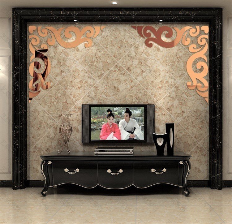 フレーム角 ダマスク柄 モダンミラーウォールステッカー 40×40cm 【クラシックブラウン】 1枚 鏡 シール インテリア 割れない鏡