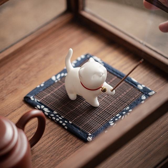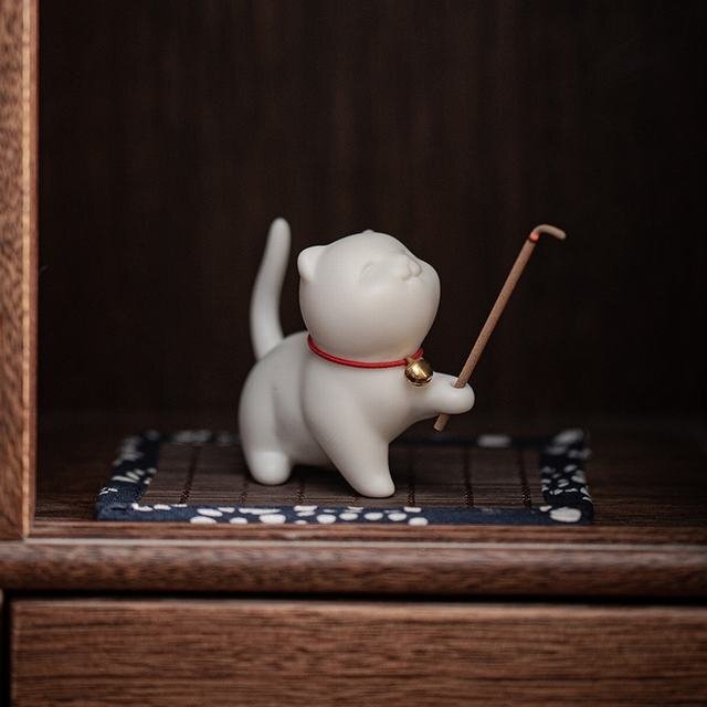 【陶器独特の質感】セラミックは、線香をたくときの高温に耐える特性を持っている。表面が滑らかで整理しやすいです。猫の全体は陶器製で、滑らかで肌触りがよく、使わないときにテーブルに並べるのも気持ちのいいインテリアです。