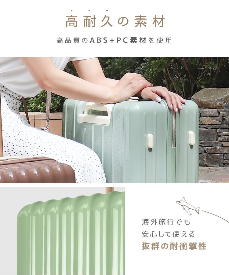 持ち運びしやすい軽量スーツケースです。 おしゃれなカラーバリエーションで気分を華やかに! 人気のパステルカラー6色展開! 高耐久、高品質のABS+PC素材を使用。 海外旅行でも安心して使える抜群の耐衝撃性で長くご使用いただけます! キャリーバーは使い勝手や身長に合わせて3段階の高さ調整が可能です。 コンパクトでありながら使いやすい内装! 荷物の飛び出しを防ぎ、小物類の仕分けに便利なポケット付きの間仕切りを両面に備えています。 施錠は操作が簡単なダイヤル暗号式! 鍵を持ち歩く必要がなく、紛失の心配もなし! 世界基準施錠TSAロック搭載! 全世界施錠した状態で荷物を預ける事が出来ます。 ■商品コード:PCBM20TE ■商品仕様 カラー:ミルクティスモア サイズ(約): ・外寸 35×21×54cm ・内寸 49×33cm 重量(約):2.9kg 容量(約):39L 素材:アルミ合金 他 ■注意事項 ・TSAロック方式の商品には、鍵穴が付いていても鍵は付属しておりません。 (検査時に空港のTSA職員が専用の鍵で開錠するためのものです) ・商品は、モニターによって色合いが異なって見える場合があります。 ・仕様・デザインは改良のため予告なく変更することがあります。 ■保障期間 7日間 ※商品到着後7日以内の初期不良・破損のみご対応させていただきます。 【新品未使用品です】 |