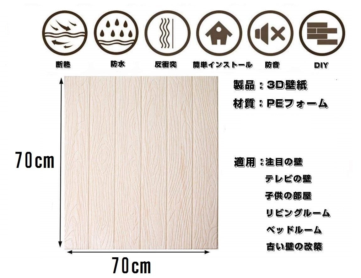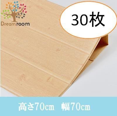 【30枚】高品質 3D クッション 壁紙シール 木目 ライトブラウン 糊付き はがせる クロス 70×70cm アンティーク 耐水 抗菌 落書き 傷防止