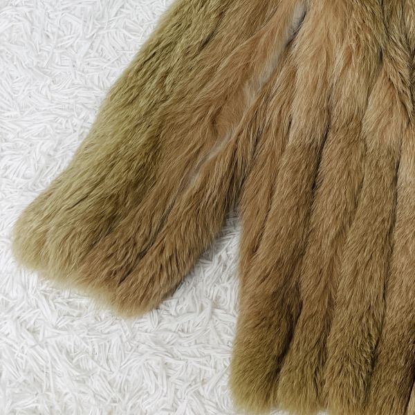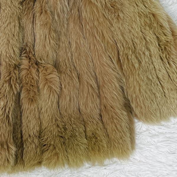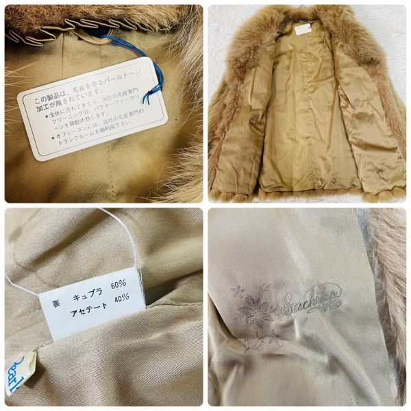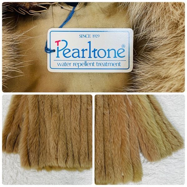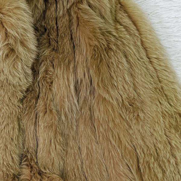 上品な光沢と柔らかな毛並みが美しいリアルファーコートです。 ブラウン系のナチュラルな色合いで、落ち着きのある華やかさを演出します。 防水・撥水加工「Pearltone(パールトーン)」が施されており、毛皮を長く美しく保ちます。 裏地には花柄のジャガードの刺繍があり、細部まで丁寧な仕立て。 肩幅 約46cm 身幅 約49cm 袖丈 約55.5cm 着丈 約76cm キュプラ60%・アセテート40%の裏地で滑らかな着心地。 フォーマルシーンから特別な場まで活躍する高級感あふれる一着です。 ※ネーム刺繍あり