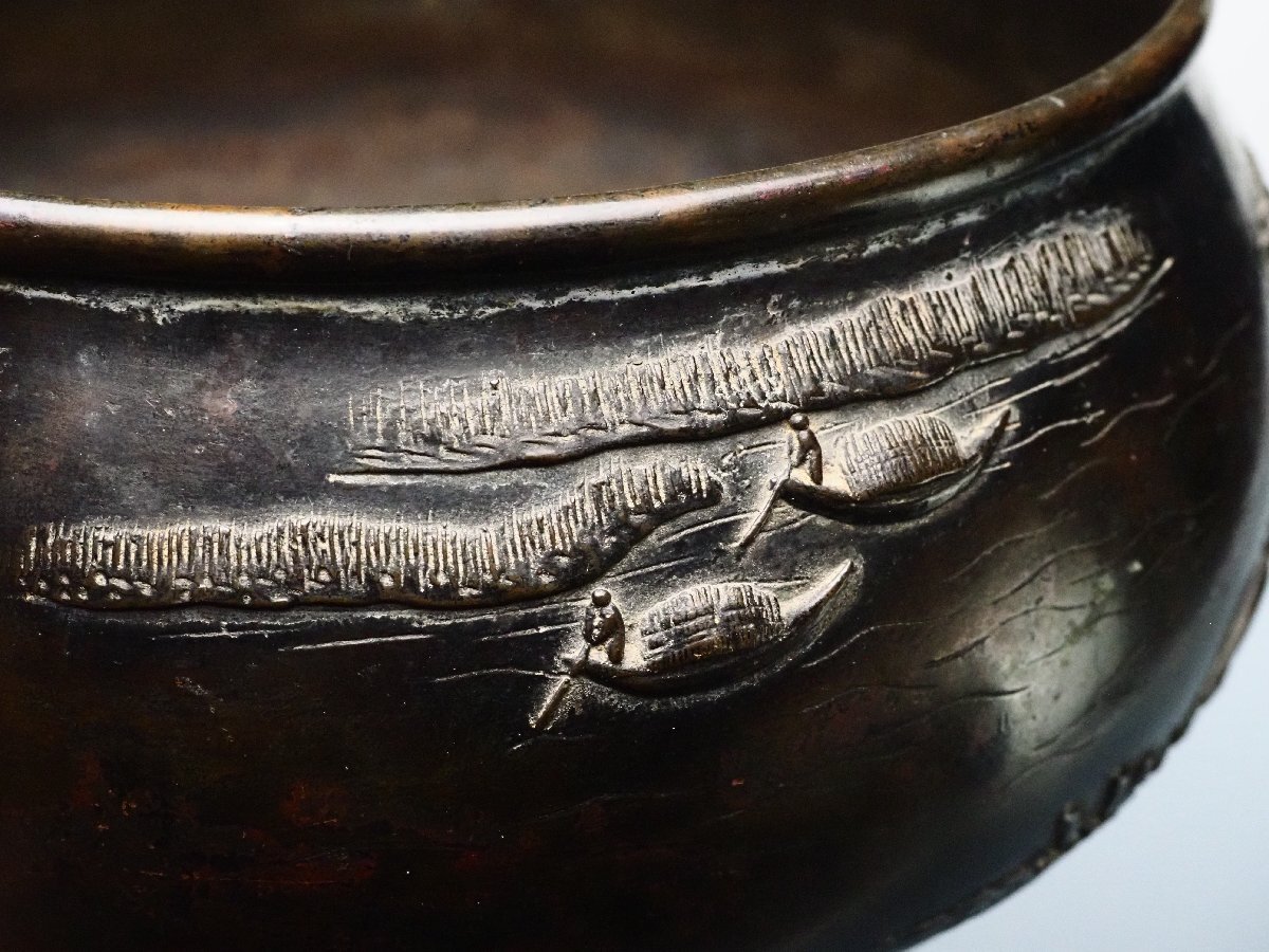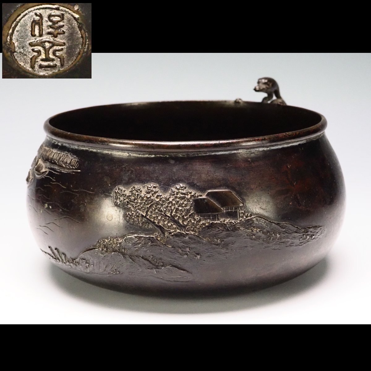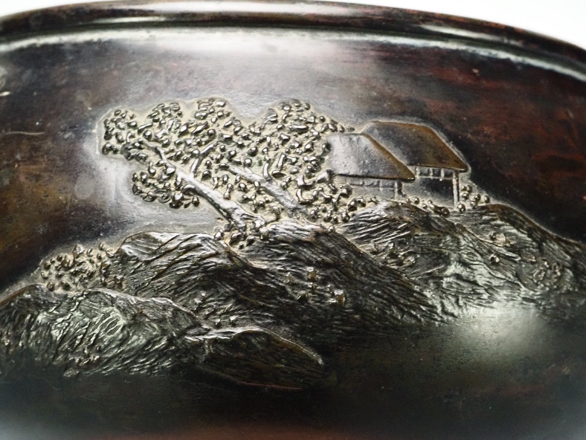 | 《サイズ》 大きさは 幅 19.5cm ・ 高さ 9.7cm ・ 重さ 916g 【※計測サイズは最大径で計測しております(例;茶釜であれば、幅は鐶付の先から鐶付の先まで、高さは底面から摘みの先までとなります】 | |||