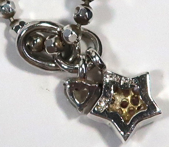 出品は画像の物のみです。使用品ですので多少の擦れなど有りますが、使用には問題ないです。星の飾りのサイズは9x9mmくらいです。チェーンの長さは40cmくらいです。