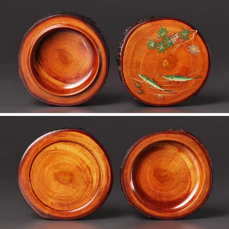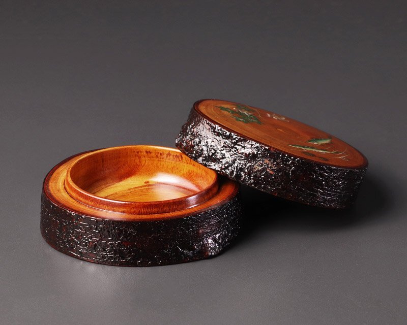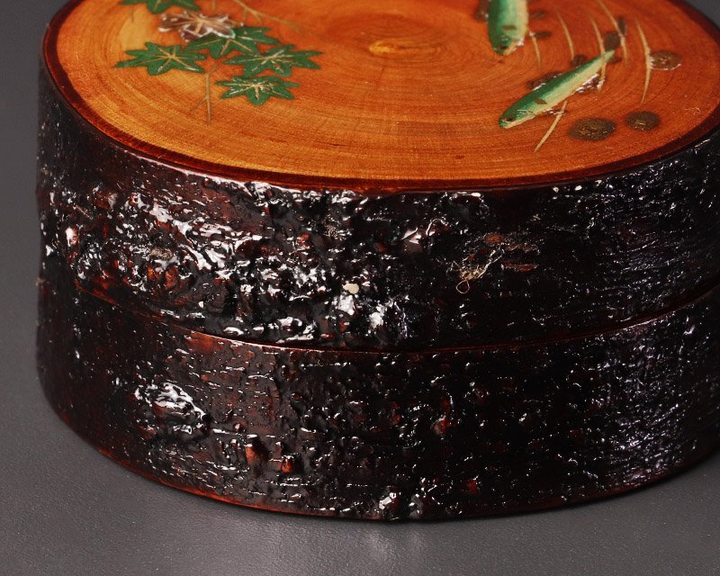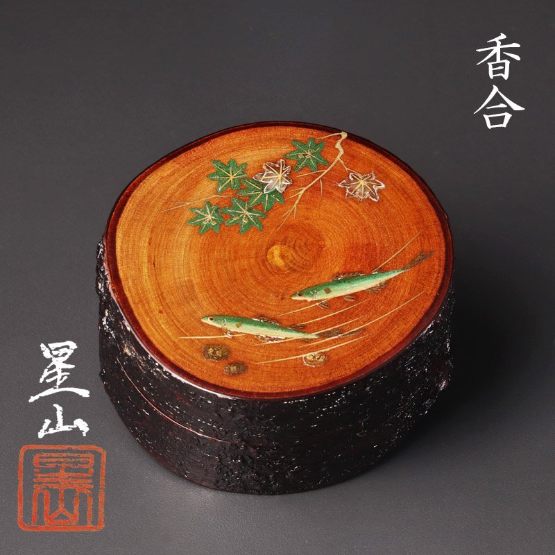 木肌の風合いに自然の力強さが宿り、鮮やかな色彩と螺鈿で繊細に描かれた魚が、穏やかな川の情景を映し出す香合です。豊かさとやすらぎを感じます。 ★商品は中林星山の作品である事を保証致します。 |