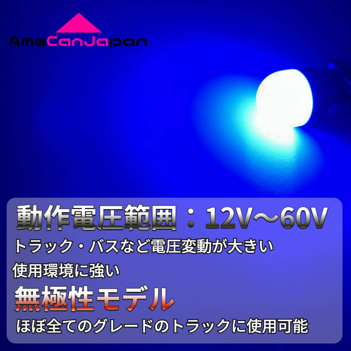 ![]() 【製品名】 AmeCanJapan [風神バルブ] 【カラーバリエーション】 ホワイト・アンバー・グリーン・ブルー・レッド ※ご購入後にご希望のカラーをお伝え頂ければ対応致します 【製品仕様】 ・動作電圧範囲:12V〜60V >トラック・バスなど電圧変動が大きい使用環境に強い ・無極性タイプ 【バルブ規格】 180°平行ピン(BA15S) 【バルブサイズ】 ヘッド部分全長20mm 全長38mm 全幅17mm 【LEDチップ】 3030 SMDチップ×6基 【商品電力】 2.5W 【光拡散ディフューザーキャップ搭載】 ディフューザーキャップで均一で柔らかい光を表現! SMD3030チップを6基搭載!爆光です! レンズと同色のバルブだとさらに綺麗に光ります! ※24V車両でS25/BA15s電球が使用されているサイドマーカー バスマーカーでしたら取り付け可能です。 【24V用適合車種一例】 グランドプロフィア スーパーグレート クオン ギガ ビッグサム ファイター レンジャー コンドル フォワード エルフ タイタン デュトロ ボンゴ アトラス エアロキング ハイデッカー セレガ Jバス |