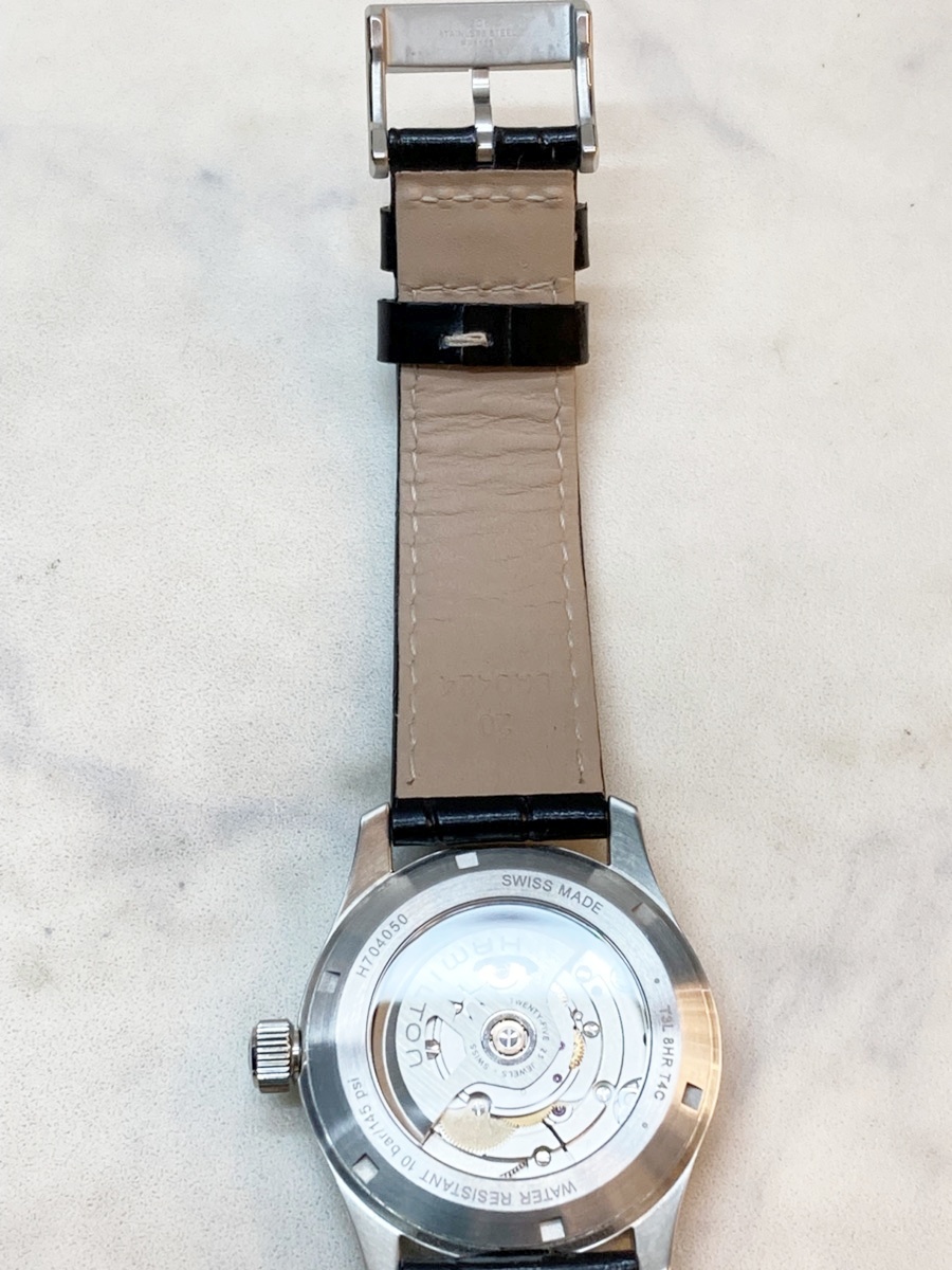 ![]() ご覧いただきありがとうございます。 入札前に、トラブル防止のため、自己紹介欄をご覧ください。 ☆商品情報☆ 店舗管理番号:YA146 発送予定サイズ:60 メーカー型番:H704050 ケースサイズ(リュウズ含む):約42.2mm ベルトサイズ(内径):最大約17.5㎝ ベルト穴で調整可能 ※多少の誤差はご了承くださいませ。 ムーブメント:オートマチック 付属品:箱、冊子、その他 状態:使用に伴うキズ・細かな擦りキズがあります。 全体的にキレイですがケースにも少しキズや汚れが付着しています。 動作確認のみ。 写真にて状態ご確認くださいませ。 交換防止のため返品交換不可となります。 良品ですが、あくまで中古品のため、ご理解いただける方のお入札をお願い致します。神経質な方は入札をご遠慮ください。 ★★★このほかにも沢山出品中!是非覗いてみてください★★★ お売りください! 無料査定と高価買取の.・。☆★ゴールディーズ★☆。・. 【ブランドバッグ、財布、金、プラチナ、ダイヤモンド、商品券、携帯電話、腕時計、etc…】 随時買取中!是非一度ご相談下さい! 群馬県と埼玉県を中心に店舗をかまえる リサイクルショップを運営する会社からの出品です。 どうぞご安心してお買物をお楽しみ下さい♪ 弊社HP https://goldies.kaitori-ten.com/ | |