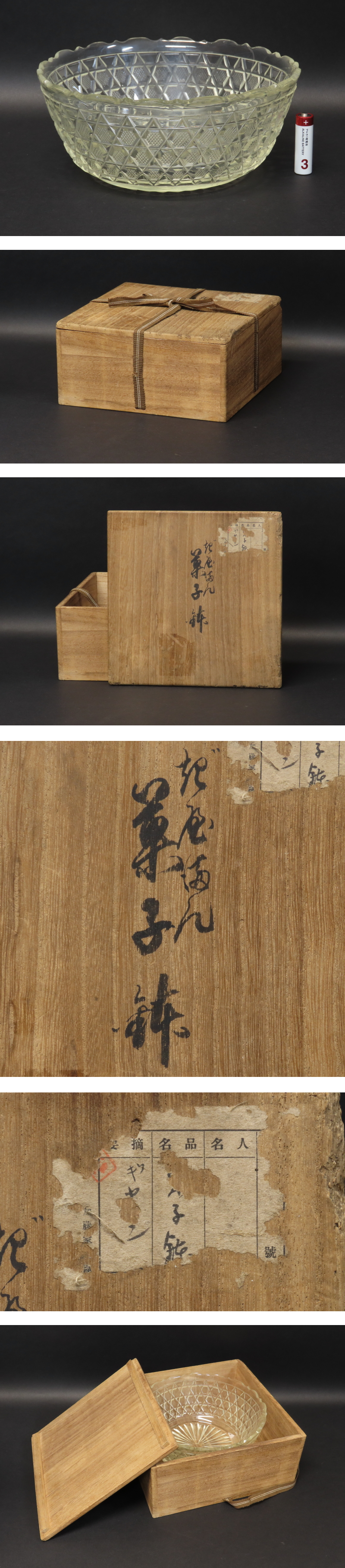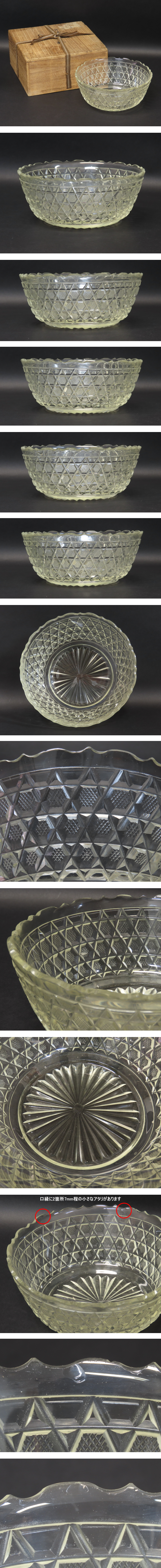口縁に7mm程のアタリ が2箇所ございます。 ガラス内部に気泡が いくつかございます。 経年の汚れやスレは ご了承ください。 |