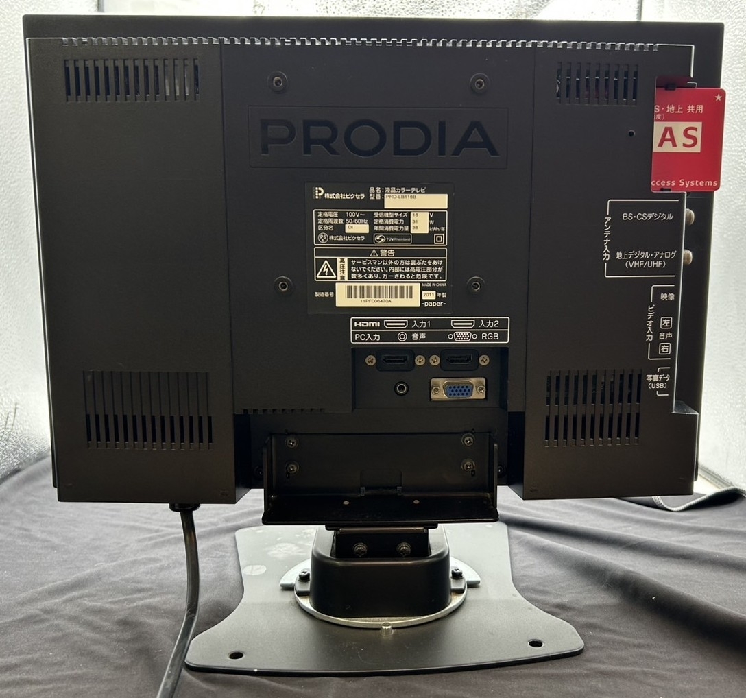 ピクセラ 16V型 液晶 テレビ PRD-LB116B ハイビジョン 2010年モデル 3ヶ月保証付!画面傷なし、リモコンあり、完全動作品です。 【動作チェック済み】 梱包時、画面部に段ボール補強、 全体はエアキャップにて梱包しています。 ≪良品≫ 到着後買い足し無しでのご使用が可能です。 動作テスト済みですので到着後すぐにご使用いただけます。 ※中古品のため本体に擦れ等ある場合がございます。ご了承ください。 製品の特性上稀に画面に小さなドット輝点がある場合がございます。ご了承ください。 リモコンは純正品、互換品ランダムになります。 ※録画にテレビは対応していません。ご了承ください。