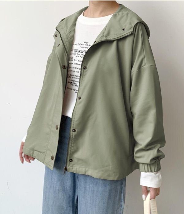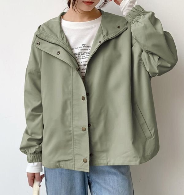 Fサイズ■カジュアル 大きいサイズ レディース パーカー ブルゾン ショートコート 長袖 アウター ジャケット★浅緑 [浏览原始页面]