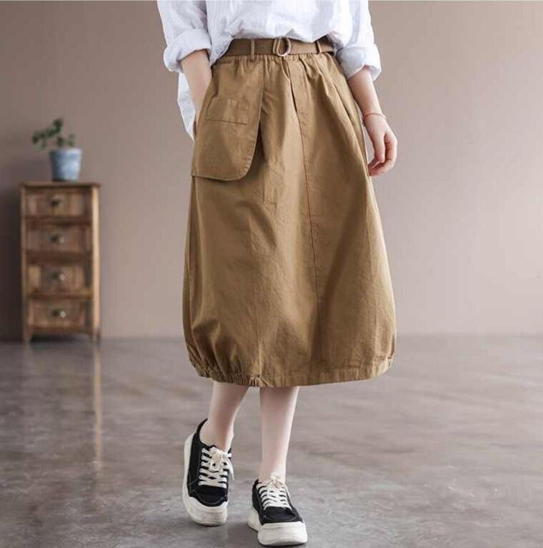 スカート ロング レディース マキシスカート Aライン コットン 大きいサイズ ロングスカート★カーキ/Lサイズ