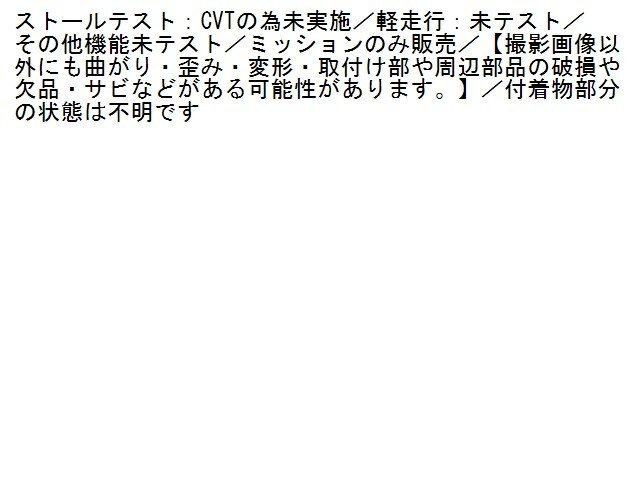 | 商品情報 | ストールテスト:CVTの為未実施/軽走行:未テスト/その他機能未テスト/ミッションのみ販売/【撮影画像以外にも曲がり・歪み・変形・取付け部や周辺部品の破損や欠品・サビなどがある可能性があります。】/付着物部分の状態は不明です | ||