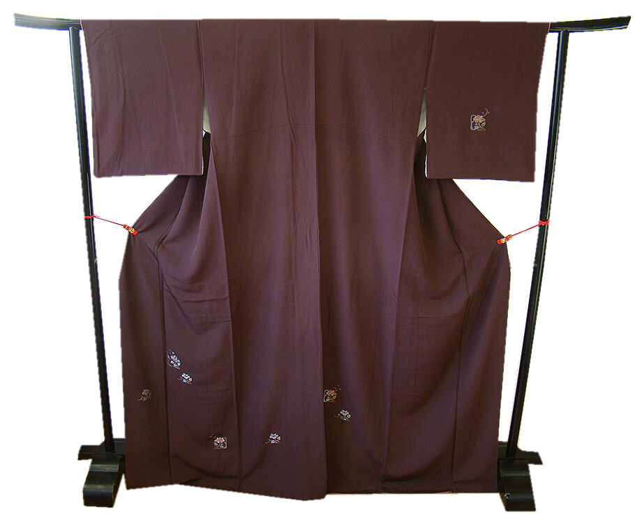 | 商品説明 | こちらのお品は「袷」ですので10月から5月までお召頂ければと思います。 とてもしなやかで柔らかな手触りの着心地良い重めのちりめん地の生地、 渋い紫鳶色地に花草柄の竹屋町刺繍、 気品に満ち溢れた彩りが正統派のお着物として一枚は欲しい逸品の素敵なお着物です。 八掛は浅紫色(正絹)、幅広い年代の方にお召頂けます。 |