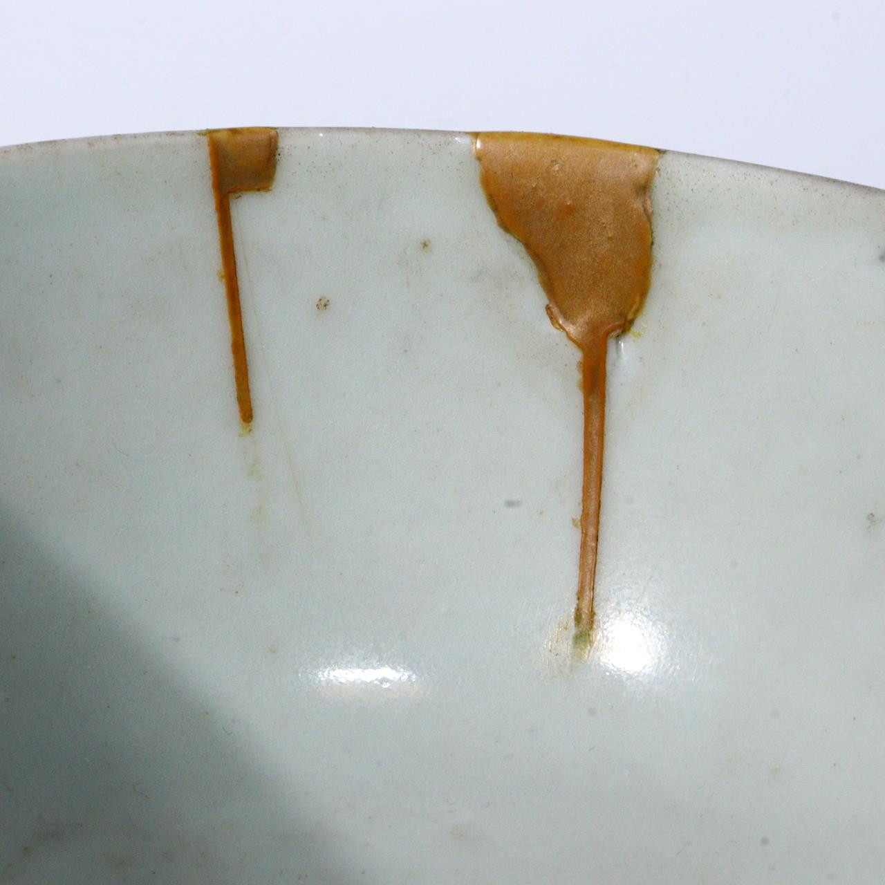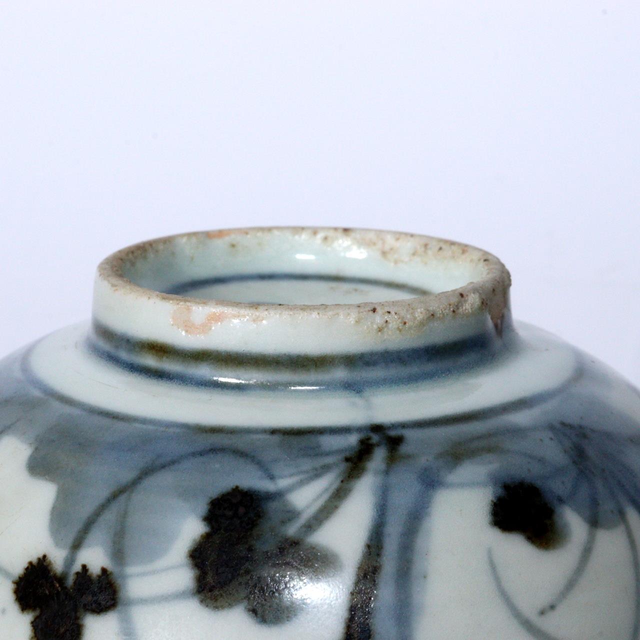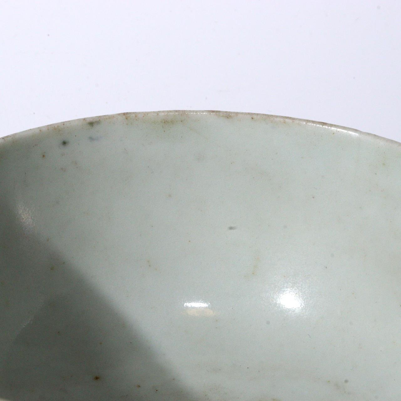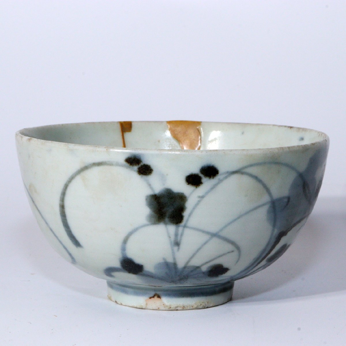 こちらは江戸期の波佐見焼の茶碗(鉢)で、 手描きによる梅文(梅の花文様)が描かれた優美な作品です。 のびやかな筆致と軽やかな余白の取り方が特徴的です。 高台裏には「大明年製」の銘が入り。 【サイズ】 高さ:約5.5cm 直径:約10.5cm 重量:約165g 【状態】 縁に修復が施されています。 全体的には良好で、時代の風合いと修復による美的趣が感じられます。 詳細は写真をご確認ください。 江戸磁器の美と手仕事の味わいを伝える佳品です。 ![]() ![]() ![]() ![]() ![]() ![]() |