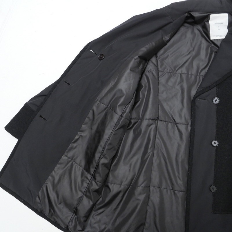| TJ6923★KEIKO KISHI by nosh ケイコキシバイノッシュ 異素材切替 中綿入り ハーフコート ブラック M相当 | |||