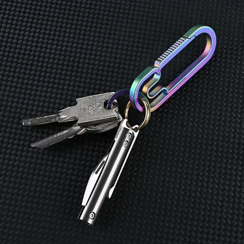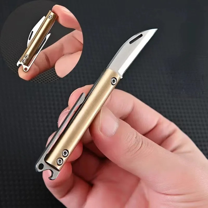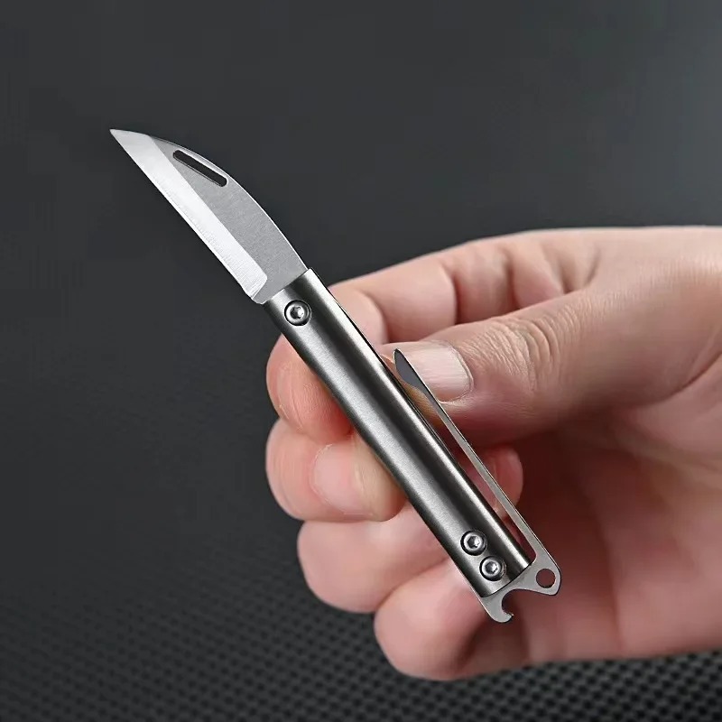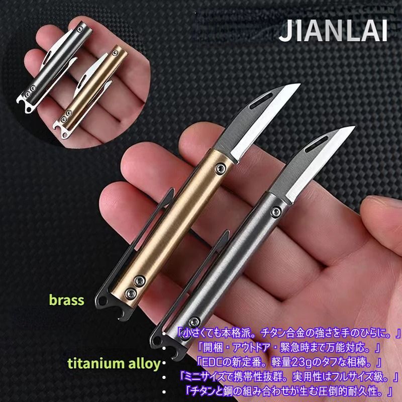 ■ 商品概要 高硬度7Crステンレス鋼ブレードとチタン合金ハンドルを採用した、携帯性に優れたミニ折りたたみナイフです。 日常の開梱作業からキャンプ・アウトドア・非常時まで幅広く活躍します。 栓抜き・バッククリップを備えており、キーホルダーやポケットにも装着可能な万能EDCツールです。 ■ 主な特徴 ・チタン合金ハンドルによる軽量・高耐久構造 ・高硬度7Crステンレス鋼ブレード ・栓抜き機能付き ・バッククリップで携帯性抜群 ・開梱、小物カット、フルーツカットなど日常用途にも最適 ・キーホルダーペンダントにも対応 ■ 仕様 ・展開時長さ:100mm ・収納時長さ:64mm ・ブレード長:36mm ・ブレード幅:10mm ・ブレード厚:1.7mm ・ハンドル長:64mm ・ハンドル直径:10mm ・ブレード素材:7Crステンレス鋼 ・ハンドル素材:チタン合金 ・バッククリップ素材:ステンレス鋼 ・重量:本体約23g(総重量25g) ■ 用途例 ・アウトドア/キャンプ ・開梱作業(段ボール、梱包材) ・フルーツカット ・非常時の簡易カッター ・携帯用EDCツール ・キーホルダーアクセサリー ■ ご注意 ・安全のため、使用・携帯に関する各自治体の条例にご注意ください。 ・本品は工具用途の折りたたみナイフです。違法性のある目的での使用・携帯は固く禁止します。 |