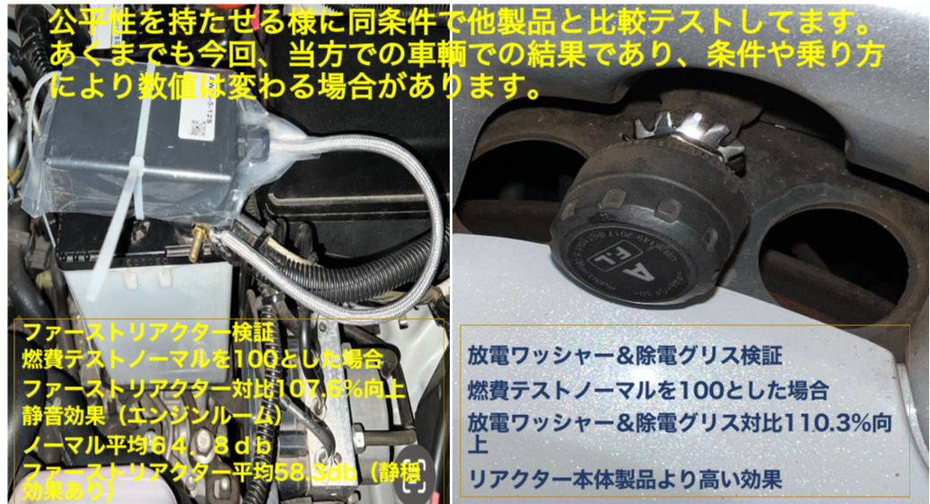 販売前に他社製品と比較走行テストもし効果の確実にある物を販売しています。