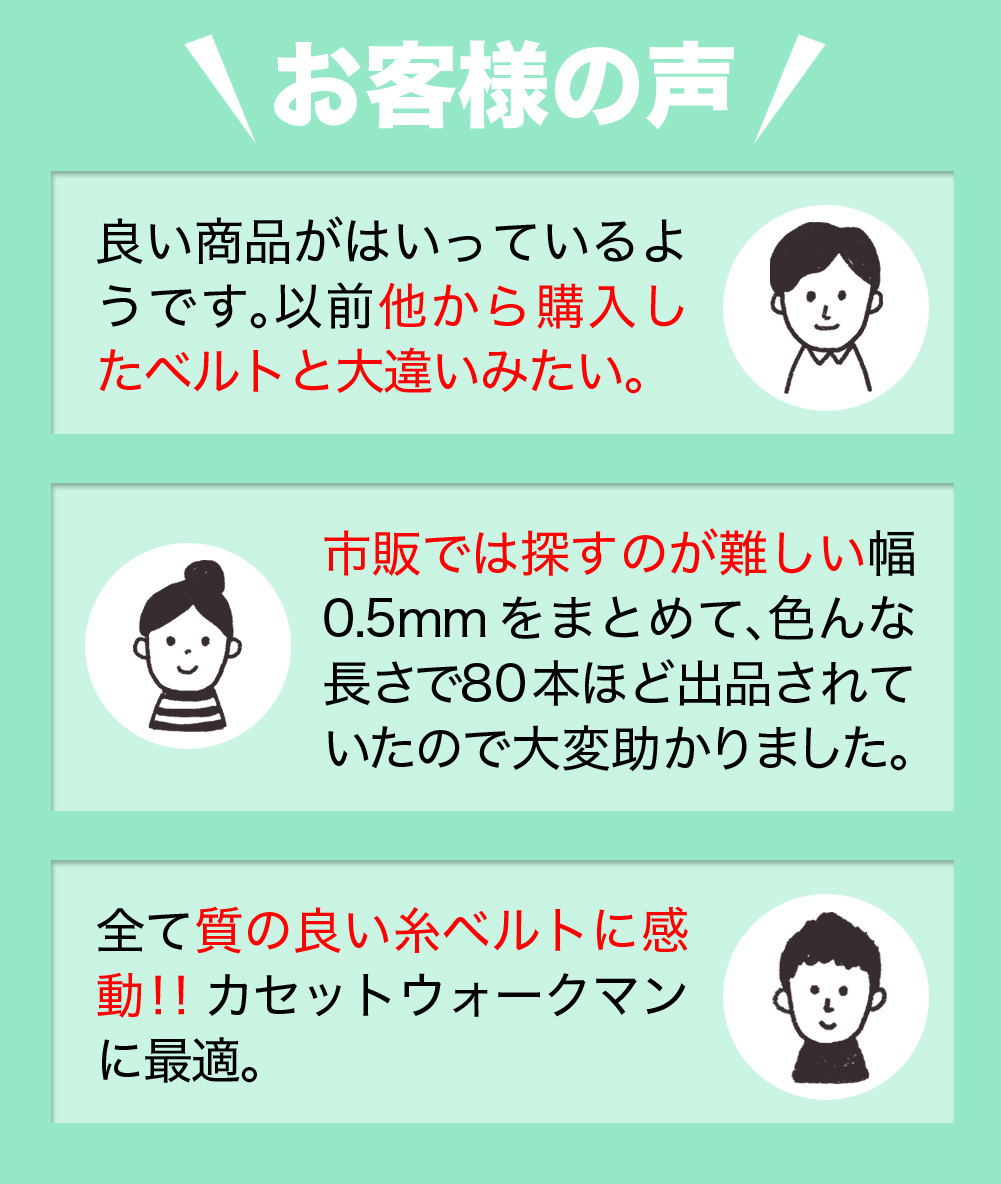 ゴムベルト 修理 補修 カセットデッキ cdプレーヤー ウォークマン オーディオ シリーズ500個販売 平型 幅2mm 折径45~125mm 約50本