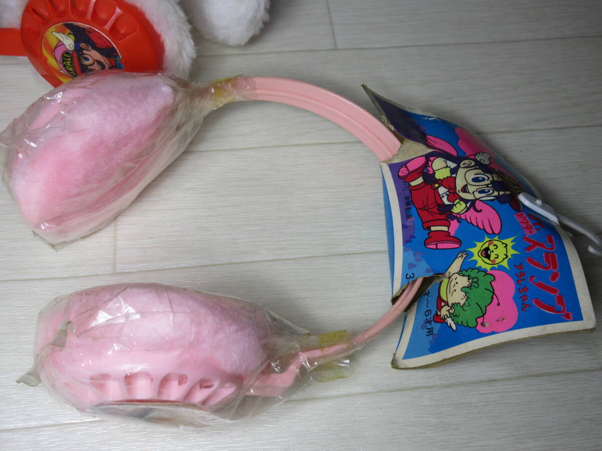 全て一応玩具屋から出て来た未使用品になります 初期のアラレちゃんの耳当て2点とやや新しいガッちゃンのクピスキッスの3点になります 耳当ては1点耳の所の袋が取れてありません.汚れは有るか無いか程度ですので普通に使って頂けると思います.もう1点耳の袋は袋に入っています 付属の紙のタグは破れ.等有ります ガッちやんのクピプキッスは裏のテープが外れていますので動かない様にセロテープを貼ってありますのと付属の電池は未開封ですが多分使えない?と思います(1998年の商品です)発送は形が変則ですのでプチプチと紙での簡易梱包での梱包.発送になります