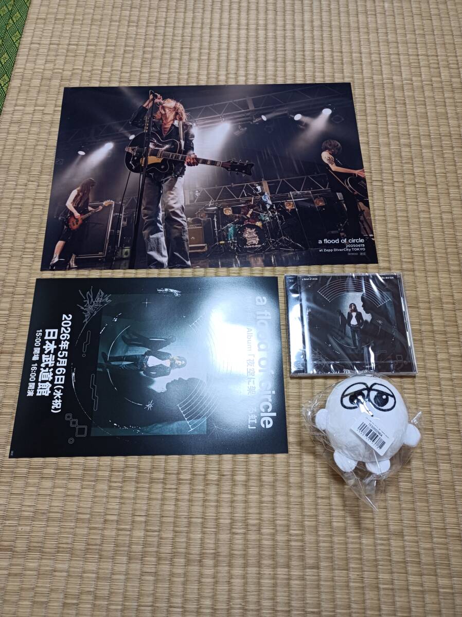 afloodofcircleの『夜空に架かる虹(未開封通常版)』『夜空に架かる虹フライヤー』『クリアファイルポスター』『ブルースくんキーホルダー』の4種セットです。バラ売りは考えておりません。発送はヤマト便着払いのみです。