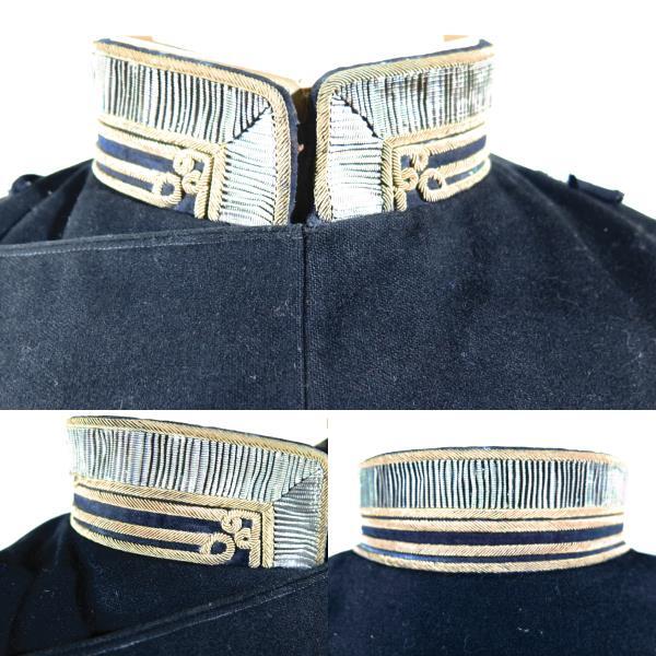 日本陸軍 大礼服/正衣 憲兵隊 大尉です。襟・袖の兵科色が黒ですので憲兵科と思いますので、画像にてご判断下さい。もしかしたら希少な一品かも知れません。当方、専門家でありませんので、質問等に関しましてご返答出来ない場合もあり・時間がかかる場合もございますのでご了解下さい。最近、悪戯・購入意思のない方のご入札が多く、当方の判断にてこれらの方は削除いたしますのでご了解下さい。評価の悪い方(ご入札を削除いたします/落札後でも削除いたします)・新規の方(ご入札を削除いたします)悪戯・興味本位の方はご入札は御遠慮下さい。お分かりの方、格安出品いたしますので、ぜひこの機会に、インティリア・コレクション・資料の一つに加えて見てはいかがでしょうか。写真参考にて時代価値材質名称真贋等ご自身の責任にて最終ご判断下さい。撮影時、光源・角度によって実際の色と、微妙に違う場合がありますのでご了解下さい。古い品にご理解ある方で、神経質の方、新品・完品をご希望の方はご遠慮下さい。落札後、御連絡・ご入金・受け取り完了ご連絡を速やかに対応できる方のみ入札をお願いいたします。古い品ですので、汚れ痛み擦り傷使用感等は御理解下さい。寸法/ 肩幅40cm 袖丈53cm 着丈71cm 首回り35cm 元払いにて発送 ノークレームノーリターン その他、希少な品多数出品いたしております。色々と時代物、珍しい物、掘り出し物が出て来ましたので、その他のオークションも覗いて見てはいかがでしょうか。きっと何かが見つかるかも知れません。