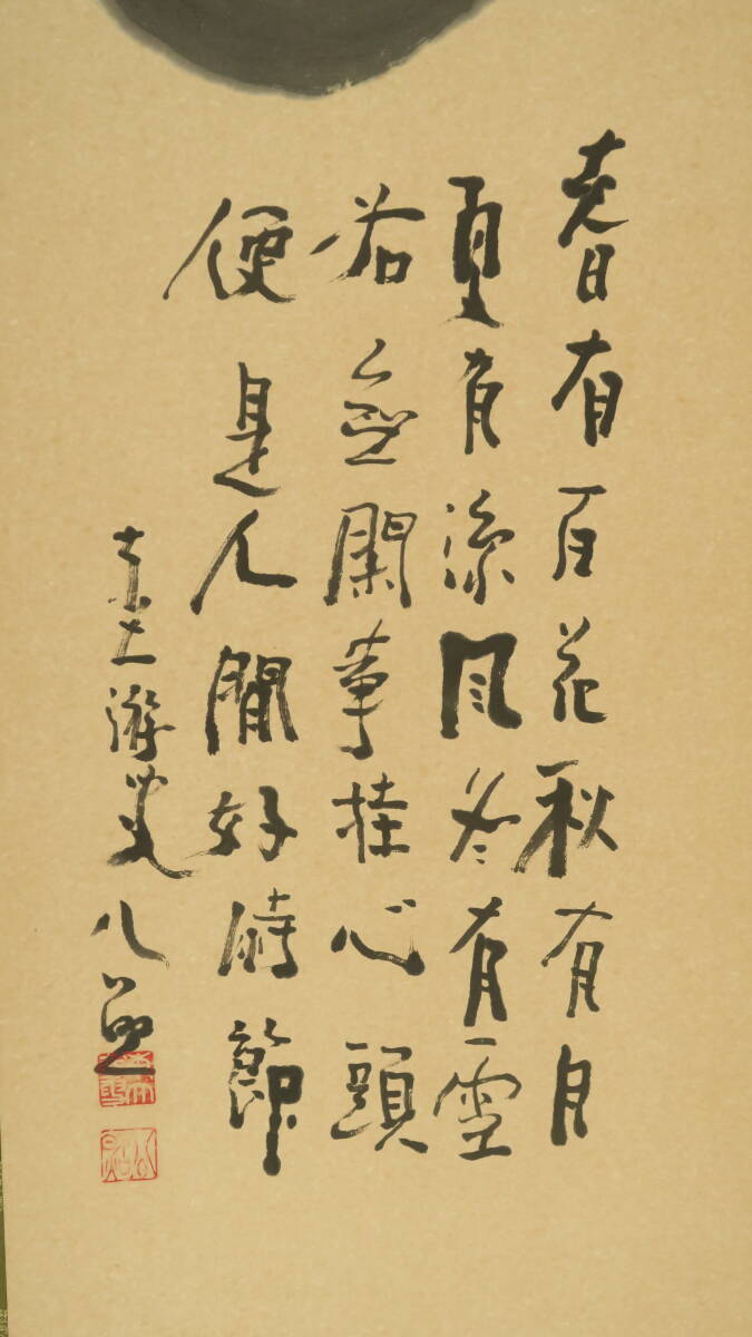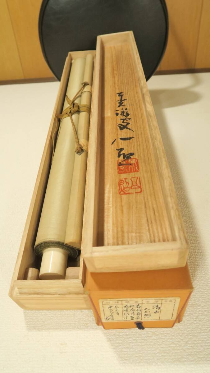 ●商品説明/清水公照書(肉筆)・「円相・春有百花・・・」(共箱)【真作】。清水 公照(しみず こうしょう、本名:東道 睦治(とうどう むつじ)、1911年1月3日 - 1999年5月6日)は、華厳宗の僧侶。兵庫県飾磨郡曽左村(現・姫路市)出身。第207世、第208世東大寺別当、華厳宗管長となり、大仏殿昭和大修理を行った。独特の味わいのある書画、陶芸で知られる。1963年頃から「泥仏(どろぼとけ)」と称するユニークな小さな仏像を制作した。泥仏庵と号す。また、「今良寛」の異名がある。●本紙(紙本)寸法;縦98.5㎝×横33.2㎝。軸寸法;縦186㎝×横46.2㎝。三段表装。本紙ヤケ。共箱(桐箱)いり。●ご入札宜しくお願いいたします。※万が一【真作】でなかった場合、返品承ります。※落札後の値段交渉には応じかねますので、ご了承ください。