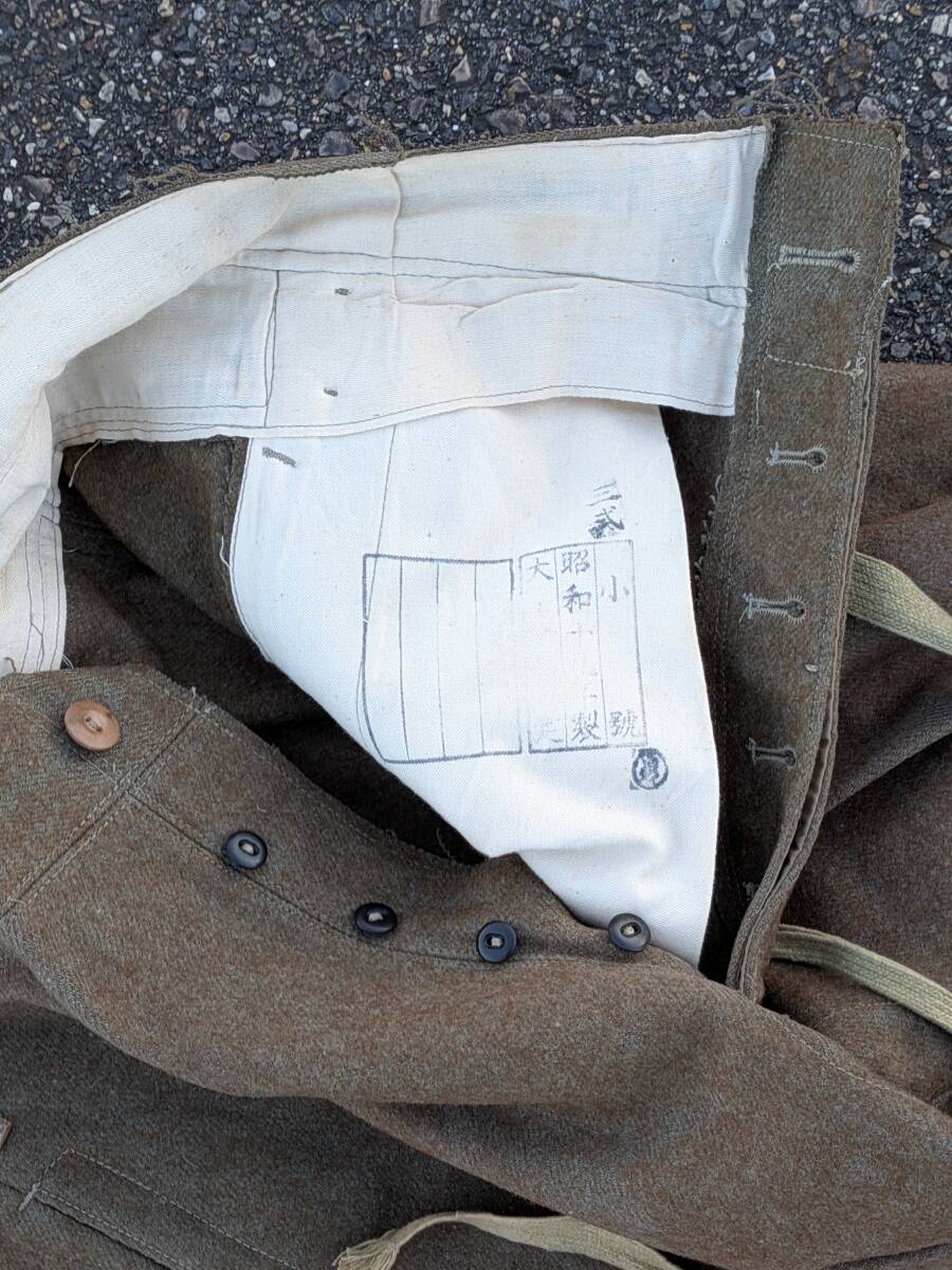 昭和十九年製の大日本帝国陸軍兵下士官用三式軍袴です。短袴。兵隊ズボン。秋冬用。大支検定。小號。経年劣化による若干の虫舐が有りますが目立つ損傷の無い程度の良いお品です。平置きで腰幅約43センチ、股下約65センチ。当時の本物。| 出价者 | 信用 | 价格 | 时间 |