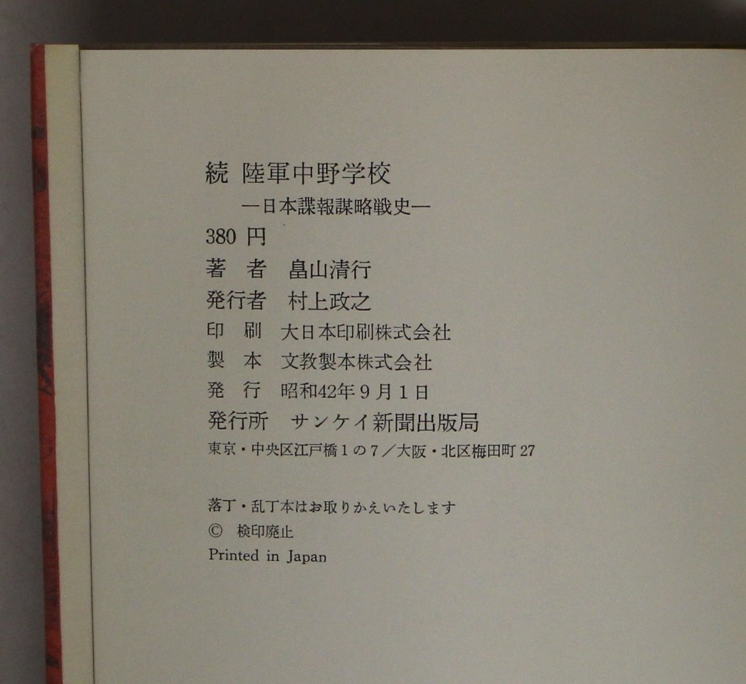 続 陸軍中野学校/パラフィン紙カバー裏貼り付け有