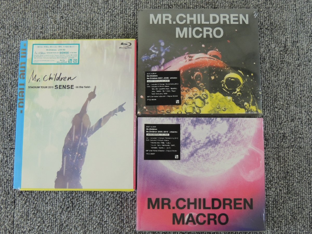 未開封 未使用 Mr.Children BD CD/DVD 3本/ミスチル STADIUM TOUR 2011 SENSE-in the field MR.CHILDREN 2001-2005 micro 2005-2010 macro