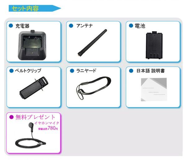 【セット内容:本体+アンテナ+リチウム電池+ベルトクリップ+充電器+イヤホンマイク】X1個
