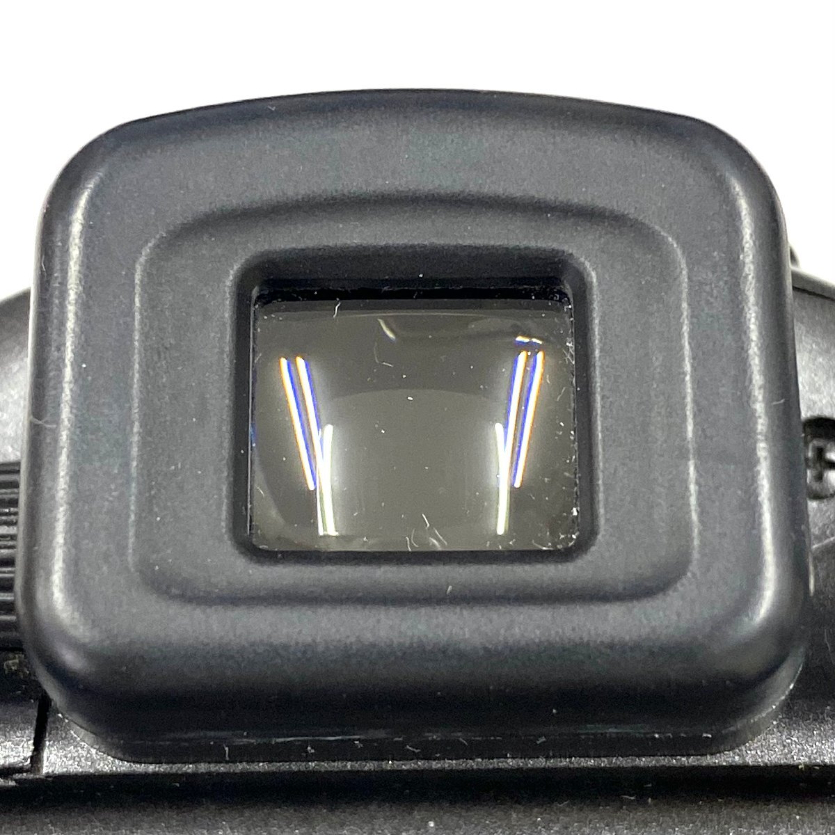 ・多数の擦れや傷、溝や隙間に埃汚れやくすみ汚れ、グリップ部分に多数の傷や剥げ/若干の繊維付着、アイカップに白くすみ