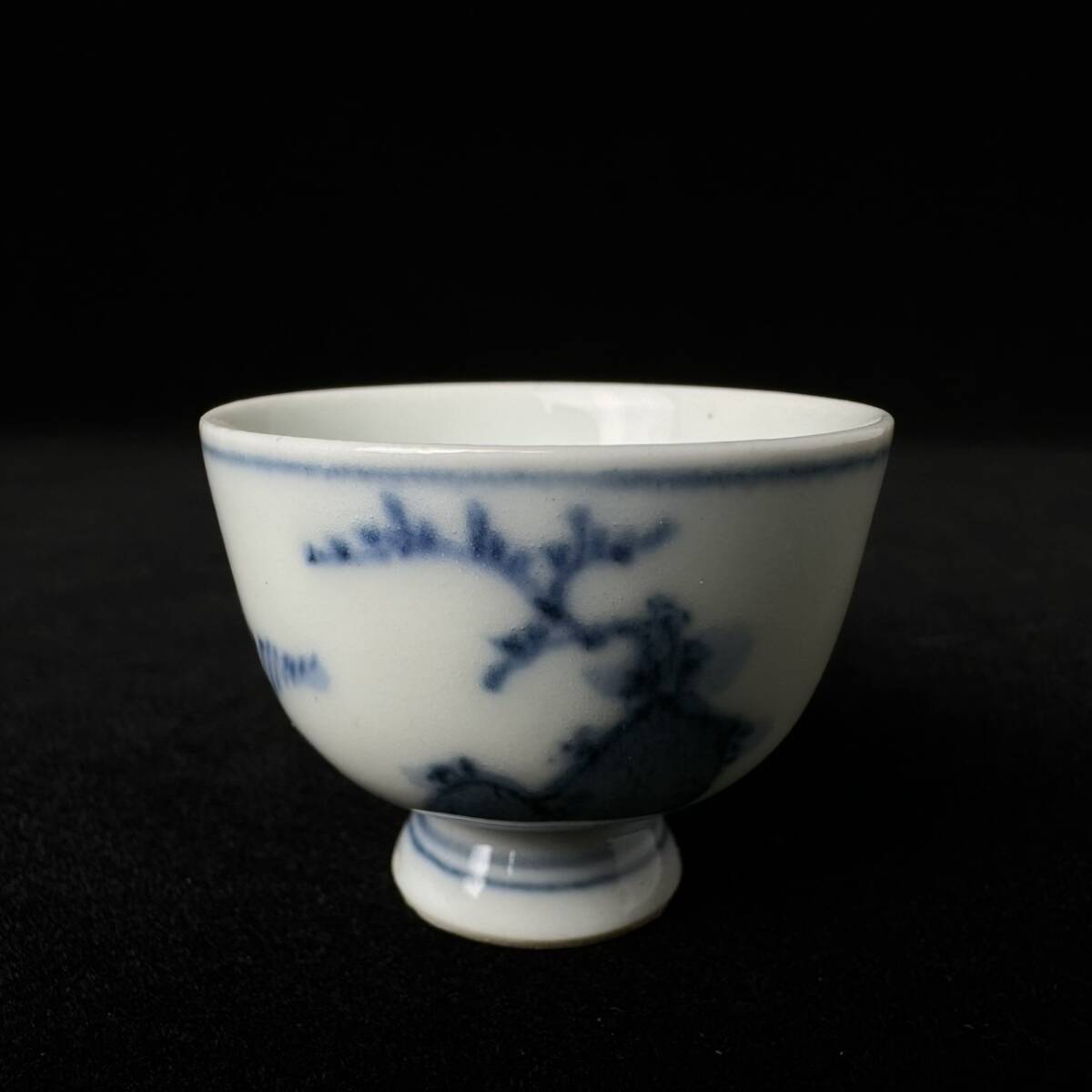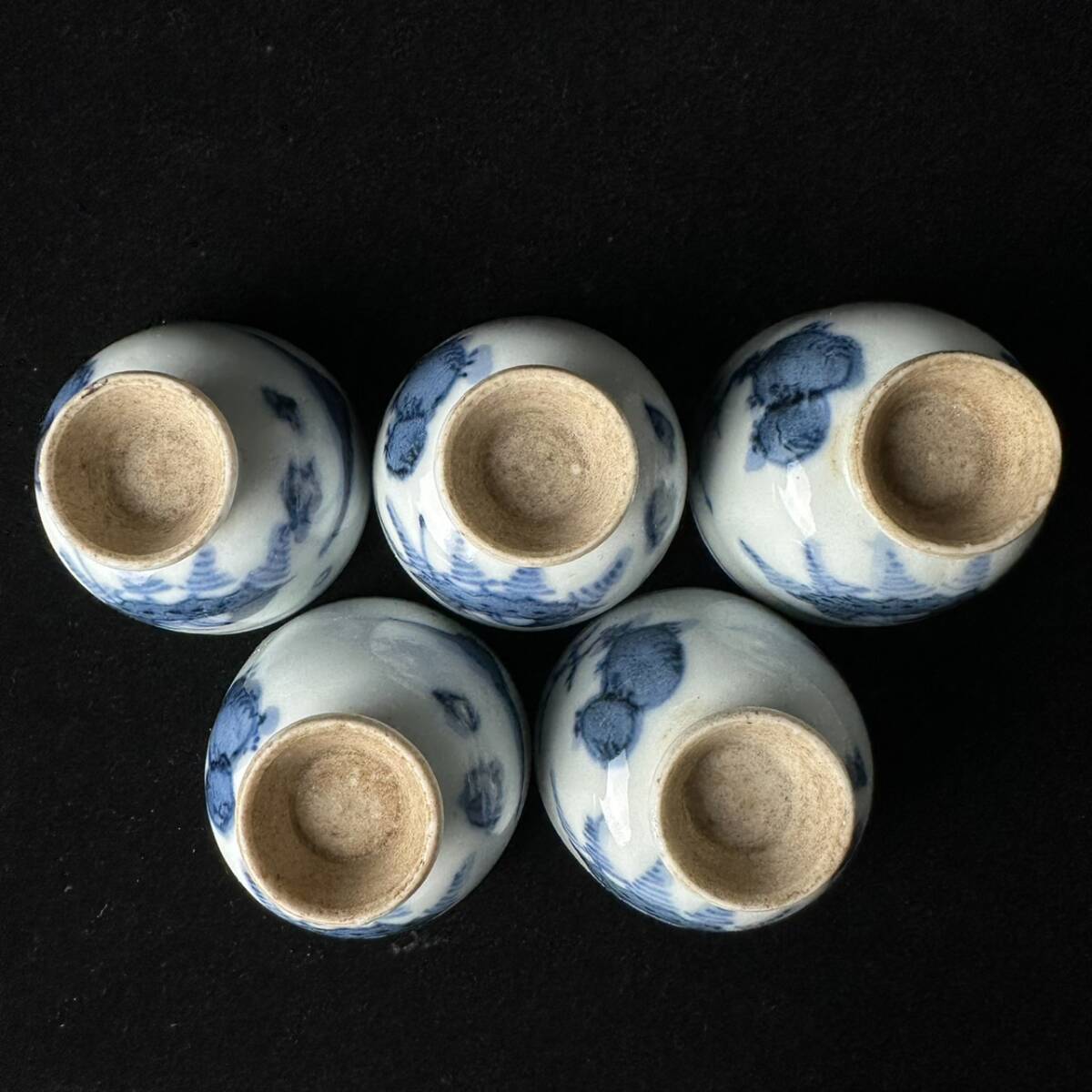 | コレクター買取品 染付 竹泉 造 豆茶碗 五客 盃 杯 茶道具 茶器 木箱付 和食器 飾物 置物 時代物 |