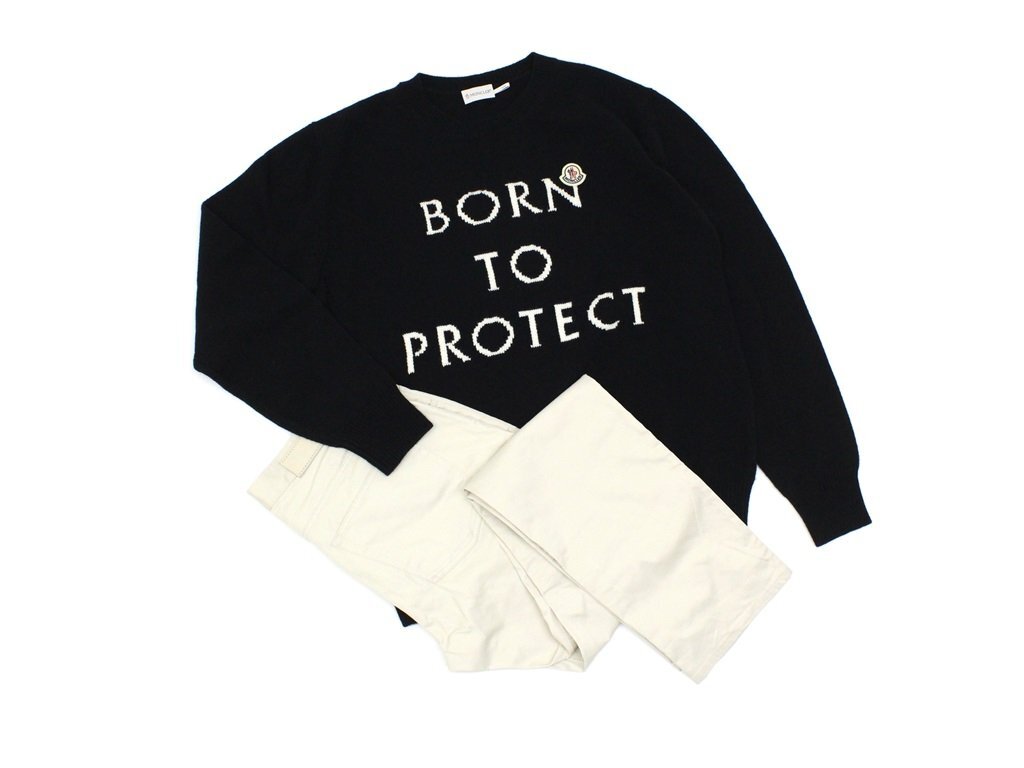 16万新品本物◆モンクレールジャパン◆XL◆『ボーントゥプロテクト』レタリングロゴニットセーター黒 MONCLER