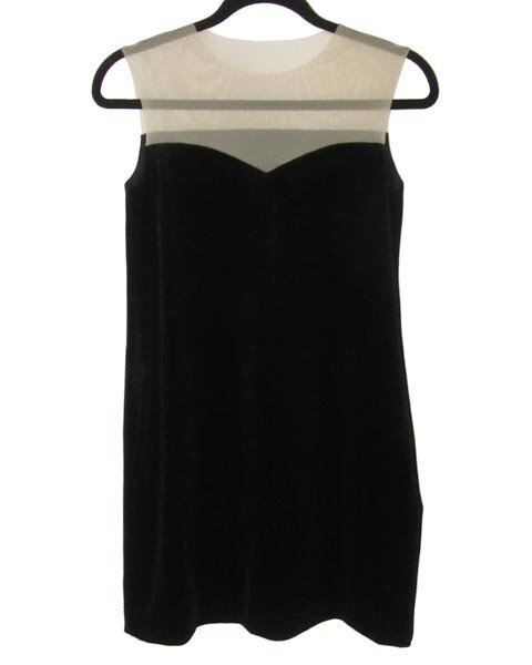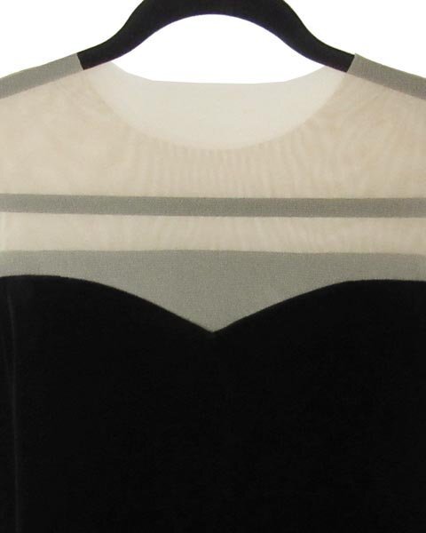 | 華やかなベロアのチュニックワンピース。肩回りはベージュのチュールネットでシアーなのでベアトップワンピース風のデザイン。お出かけスタイルからちょっとしたパーティーなどでおすすめです。 |