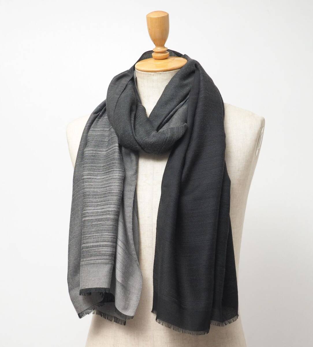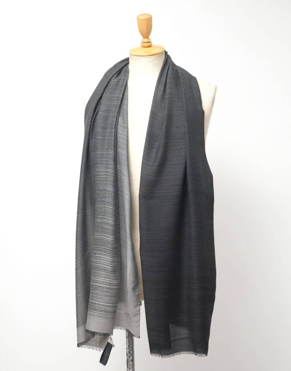 | GR3367◎イタリア製 ARMANI アルマーニ ロゴデザイン 大判 ストール ショール グラデーション ブラック×グレー系 全長:約192×76cm | |||
