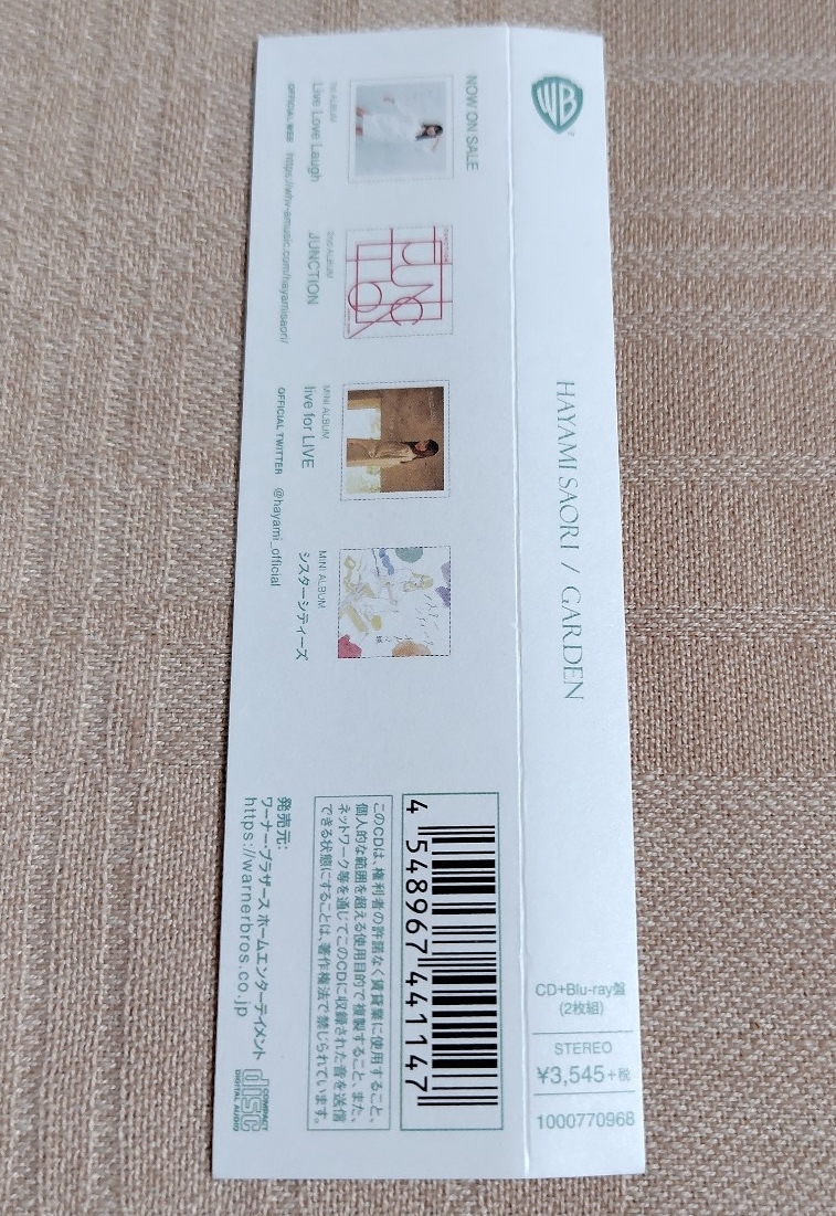 2020年WARNER BROS.(1000770968) ●状態● 未開封品でしたが検品のために開封して一度だけ試聴した商品です ●収録曲● CD 1. garden 作詞・作曲:早見沙織/編曲:冨田恵一(冨田ラボ) 2. 瀬戸際 作詞・作曲:早見沙織/編曲:松本良喜 3. やさしい希望(Bossa Nova) 作詞・早見沙織/作曲:矢吹香那/編曲:増田武史 ※初レコーディング音源化 4. Akasaka5 作詞・作曲:早見沙織/編曲:清水哲平 5. glimmer 作詞・作曲:早見沙織/編曲:岡部啓一(MONACA) BONUS TRACK. ワンスモア 作詞:早見沙織・矢吹香那/作曲:矢吹香那/編曲:前口渉 Blu-ray 1.やさしい希望(MV) 2.Installation(MV) 3.NOTE(MV) 4.夢の果てまで(MV) 5.Jewelry(MV)6.新しい朝(MV) 7.Let me hear(MV) 8.Statice(MV) |