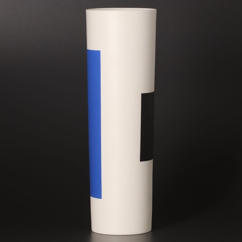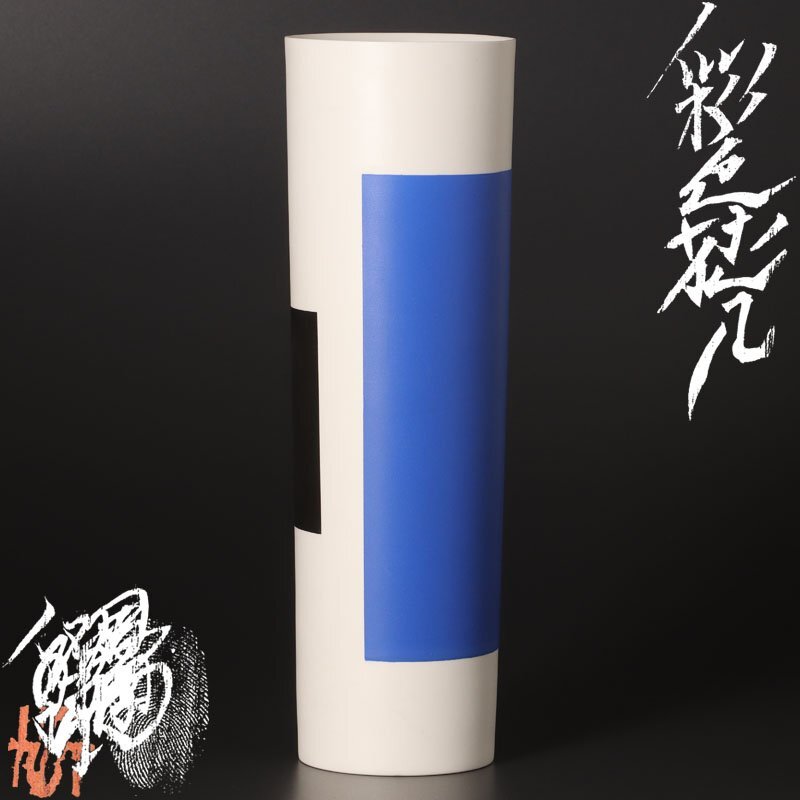 ブルー、ブラック、ホワイトのコントラストが目を引く花入です。シンプルな図形の組み合わせながら、見る方向によって様々な景色を楽しめます。 ★商品は桑田卓郎の作品である事を保証致します。 |