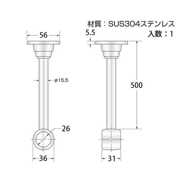 | 貫通するタイプのブラケット。クローゼットなどの天井からポールを吊るす時におすすめです。 |