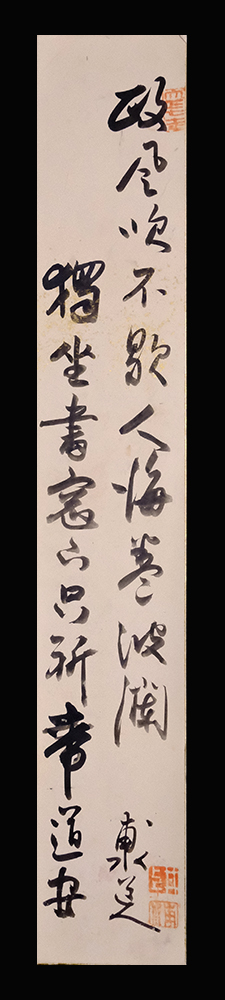 【読み】 「政風吹不歇 人海巻波瀾 獨坐書窓下 只祈帝道安 甫水道人」 【訓読】 「政風吹いて歇(や)まず 人海波瀾を巻く 獨坐す 書窓の下 只だ祈る 帝道の安らかなるを 甫水道人」 紙本肉筆未装短冊1点 作品寸法:36.2cm x 6.0cm 商品状態:良好。実際の品を画像にてお確かめ下さい。 ★本品は印刷ではなく肉筆保証の作品です。 ★本品は真作保証の作品です。 出品作品の読みにつきましては、ご落札頂いた後のご依頼についてのみ、出来るだけ対応させて頂きます。 井上円了(いのうえ-えんりょう) 1858―1919。 明治・大正時代の仏教哲学者、教育家。安政(あんせい)5年2月4日、越後(えちご)国(新潟県)三島(さんとう)郡浦村(現、長岡市)の浄土真宗大谷派慈光寺に生まれる。幼名は岸丸、のちに襲常(しゅうじょう)、得度して円了と改名した。号は甫水(ほすい)。石黒忠悳(いしぐろただのり)より漢籍を学び、長岡洋学校、東本願寺教師学校、東京大学哲学科を卒業後、キリスト教や欧化的風潮、仏教僧侶(そうりょ)の腐敗に対して、『真理金針(しんりこんしん)』(1886)、『仏教活論(序論)』(1887)を著して警醒(けいせい)に努めた。また哲学会、国家学会を組織、1887年(明治20)には哲学館(後の東洋大学)を創立した。また東京・中野に哲学堂を建て、釈迦(しゃか)、孔子、ソクラテス、カントの四聖を祀(まつ)った。晩年は迷信否定のため『妖怪学講義録(ようかいがくこうぎろく)』を著し、世に妖怪博士と称された。『仏教活論』の主張は、倶舎(くしゃ)の哲学は唯物論に、法相(ほっそう)の阿頼耶識(あらやしき)はカントやフィヒテの絶対主観に合致し、これらを統一したものが天台の中道(ちゅうどう)思想であること、大乗思想は西洋の最大幸福説と同一に帰するとすることなどで、キリスト教に対して仏教の優位を説き、明治仏教界に多大の影響を与え、仏教復興の端緒となった。大正8年6月5日、中国旅行中、遼寧(りょうねい)省大連(だいれん)で客死した。 出典:日本大百科全書(ニッポニカ) |